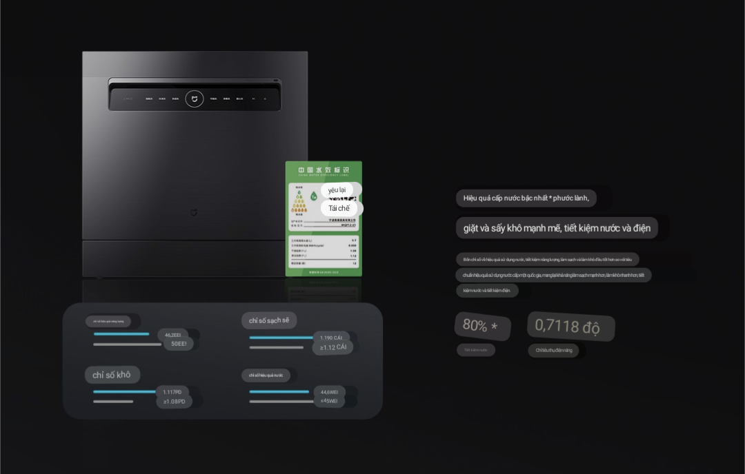 Sau thanh công của máy rửa bát xiaomi mijia S1 15 bộ , Xiaomi đã ra mắt Máy rửa bát thông minh Mijia S1 12 bộ. Cánh cửa thông minh có thể tự động đóng mở; cửa sẽ mở ra để đẩy nhanh quá trình làm khô và sau đó đóng lại để bảo vệ bát đĩa sạch khỏi bụi và phấn hoa. Máy rửa bát thông minh  có chu trình làm khô bằng không khí nóng, làm khô đĩa bát bằng không khí nóng ở 80 ° C (~ 176 ° F). Xiaomi tuyên bố rằng không khí nóng và cửa tự động mở giúp làm khô bát đĩa của bạn nhanh hơn 40% so với máy rửa bát thông thường. Thêm vào đó, sấy khô bằng không khí nóng ở 72 ° C (~ 162 ° F) mang lại tỷ lệ khử trùng 99,99%. Các Cảm biến  và công nghệ  AI sẽ phát hiện mức độ bẩn trên bát đĩa trong 10 giây. Điều này cho phép Máy rửa bát đĩa thông minh Mijia S1 chọn chương trình rửa tối ưu một cách thông minh, điều chỉnh thời gian chu trình khi cần thiết. Ngoài ra, bạn có thể chọn chế độ rửa với các cài đặt thời gian, nhiệt độ và cường độ khác nhau. Bạn có thể chọn chế độ của mình trên màn hình điều khiển hoặc thông qua ứng dụng Mihome ,  điều khiển thiết bị bằng giọng nói. Máy rửa bát Mijia 12 bộ S1 có kích thước 595 x 600 x 525 mm  với không gian chứa lớn. 27 tia phun cung cấp công suất lên đến 45.000 Pa để làm sạch hoàn toàn và động cơ biến tần BLDC giảm thiểu tiếng ồn do máy tạo ra.