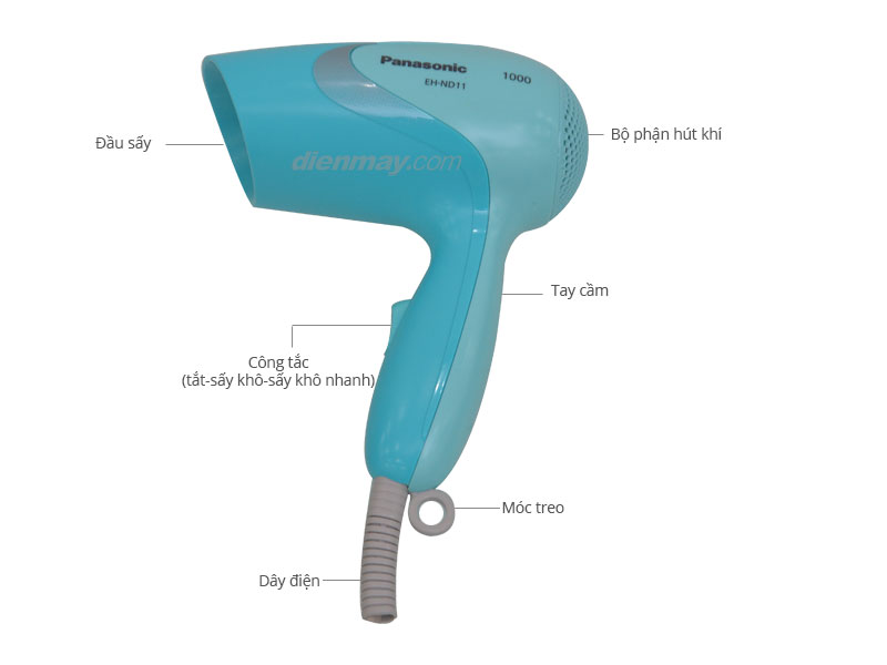 Sấy tóc nhanh với công suất 1000 W, tiết kiệm điện Máy sấy tóc Panasonic ND11-A645 cho luồng gió mạnh, giúp sấy tóc khô nhanh, an toàn, bảo vệ mái tóc của bạn không bị tổn