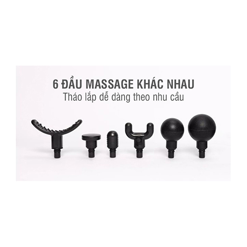 Súng matxa cầm tay Nikio NK-275 có 6 loại đầu massage khác nhau đi kèm. Mỗi đầu có kiểu dáng và công năng riêng để matxa hiệu quả cho từng nhóm cơ trên cơ thể. Đầu massage có thể tháo lắp dễ dạng theo nhu cầu người dùng để có hiệu quả giãn cơ tốt nhất.
