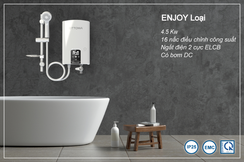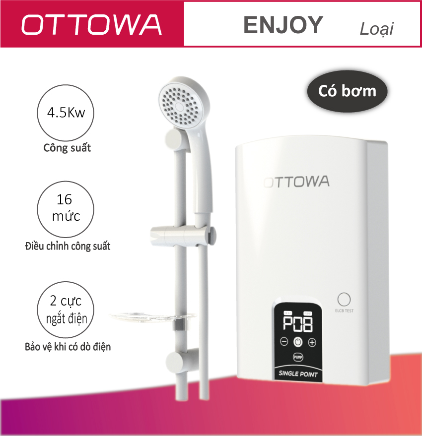 ✨Máy tắm nước nóng OTTOWA TE45P01 - Hàng chính hãng - Có bơm