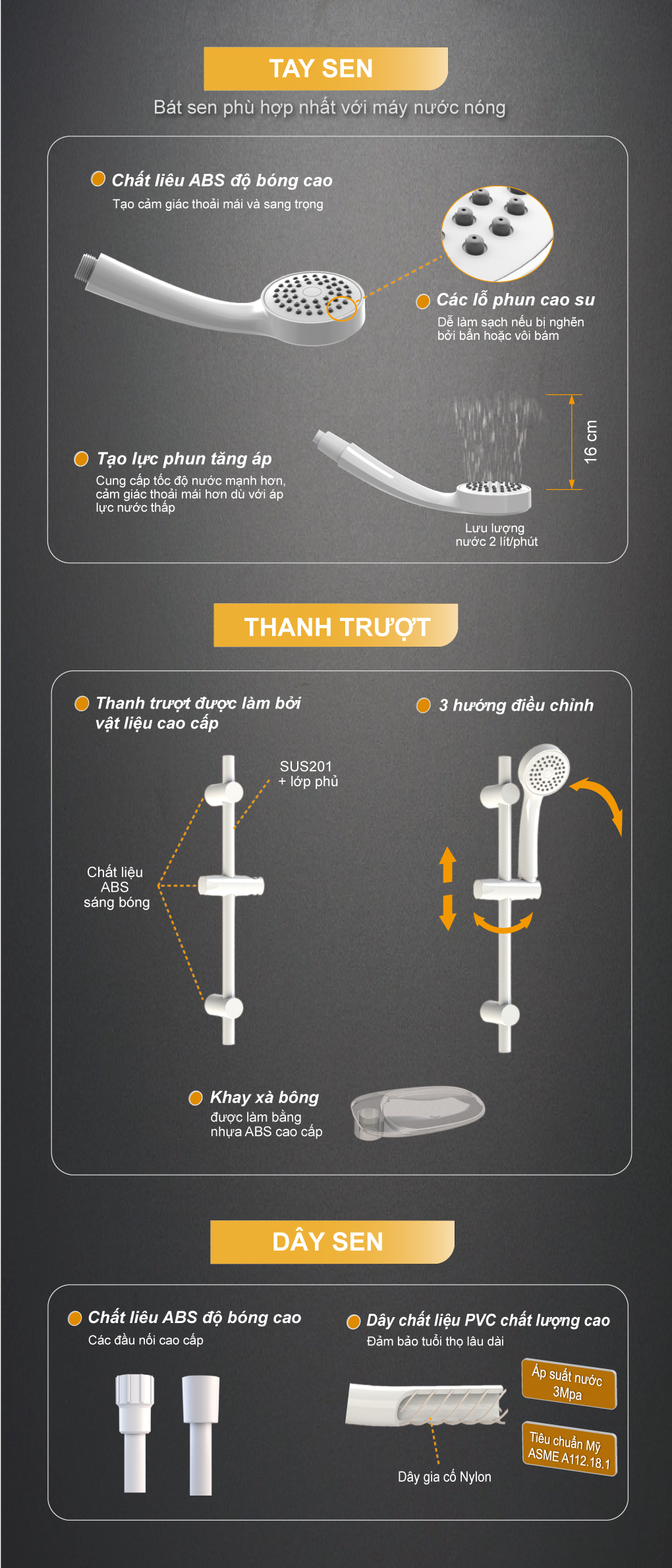 1. Tay sen ; 2) Thanh trượt và khay xà bông;