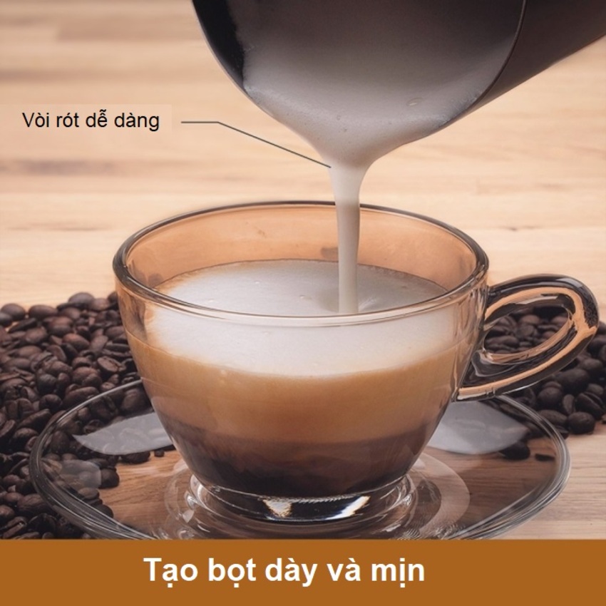 - Máy tạo bọt sữa theo quy trình sử dụng hơi nước nóng để làm nóng sữa và tạo bọt. Máy rất đa năng, có thể hỗ trợ pha cà phê sữa trứng, Capuchino, cacao sữa, trà sữa matcha, trà sữa lipton. rất hiệu quả, là thiết bị phải có khi mở quán và khởi nghiệp barista, để tăng thêm hương vị thơm ngon. Người pha chế cũng dễ dàng trang trí bề mặt đồ uống theo những tạo hình nghệ thuật từ bọt sữa. Máy tạo bọt sữa nóng dễ dàng cho ra những lớp bọt sữa mềm mại; mịn màng và có cấu trúc vững vàng để tạo hình trang trí. Tính năng hâm nóng đồ uống: