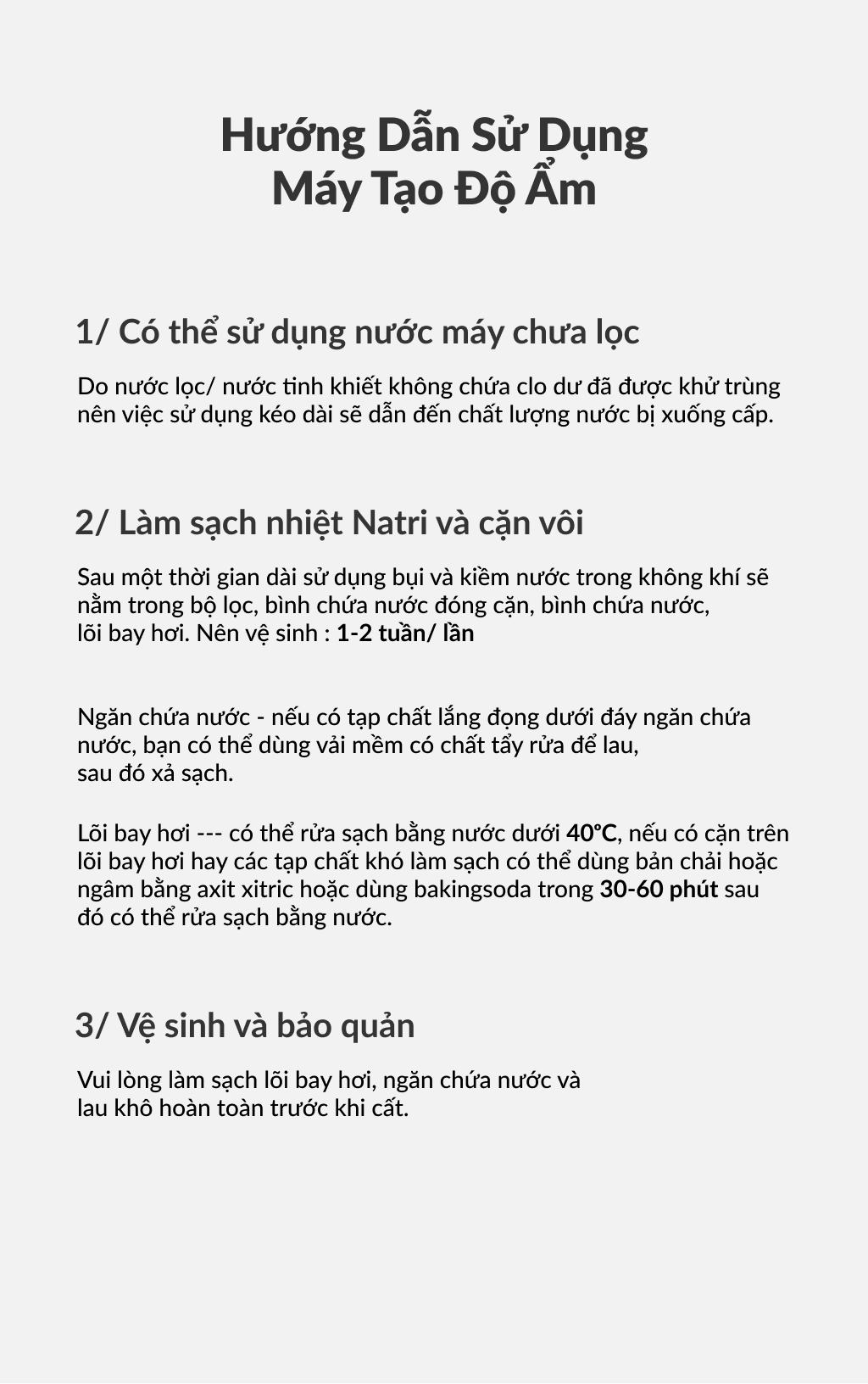 – Công nghệ phun sương siêu âm cho phép hoạt động gần như không gây tiếng ồn và tạo ra hạt sương siêu nhỏ mức micro – Công nghệ bình sạch diệt khuẩn giúp bảo