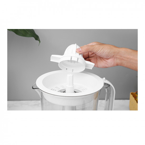 Máy vắt cam Sharp thiết kế gọn nhẹ, màu trắng sáng tươi trẻ, có tay cầm chắc chắn Chuyên dụng để vắt các loại hoa quả họ cam như cam, bưởi, quýt, chanh,… đáp ứng nhu