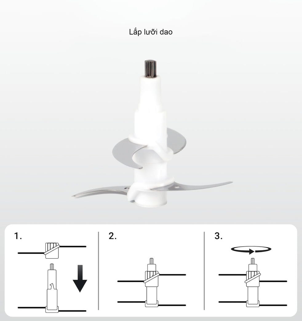 • Thân, cối xay và lưỡi dao dễ dàng tháo lắp, thuận tiện cho việc vệ sinh sau mỗi lần sử dụng.