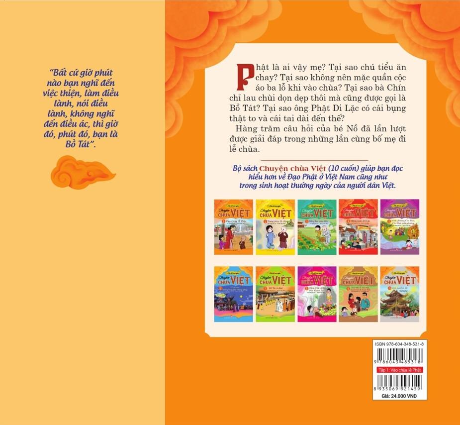 Thông qua câu chuyện bé Nồ cùng gia đình đi lễ chùa, vào chùa gặp Sư trụ trì và chú tiểu Tâm Tĩnh, bộ Mẹ kể con nghe – Chuyện chùa Việt lần lượt hé mở những kiến thức cơ bản về đạo Phật.