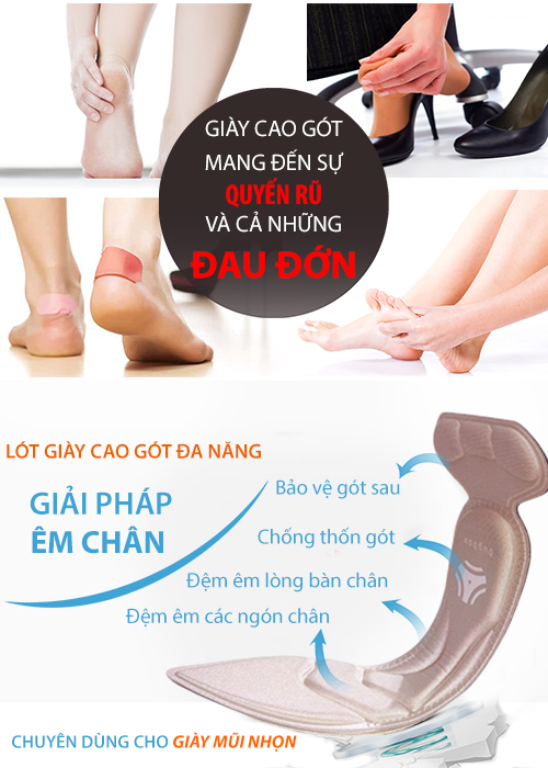 Hàng ngày, vì tính chất công việc, hoc tập và lao động mà chúng ta buộc phải thường xuyên sử dụng giày cao gót. Không ít trường hợp bị đau bàn chân và các ngón chân khi mũi giày chịu tải trọng của toàn cơ thể. Đi lâu ngày lót theo giày bị lún làm cho phần bàn chân bị chai sần hoặc giày bị rộng so với ban đầu.