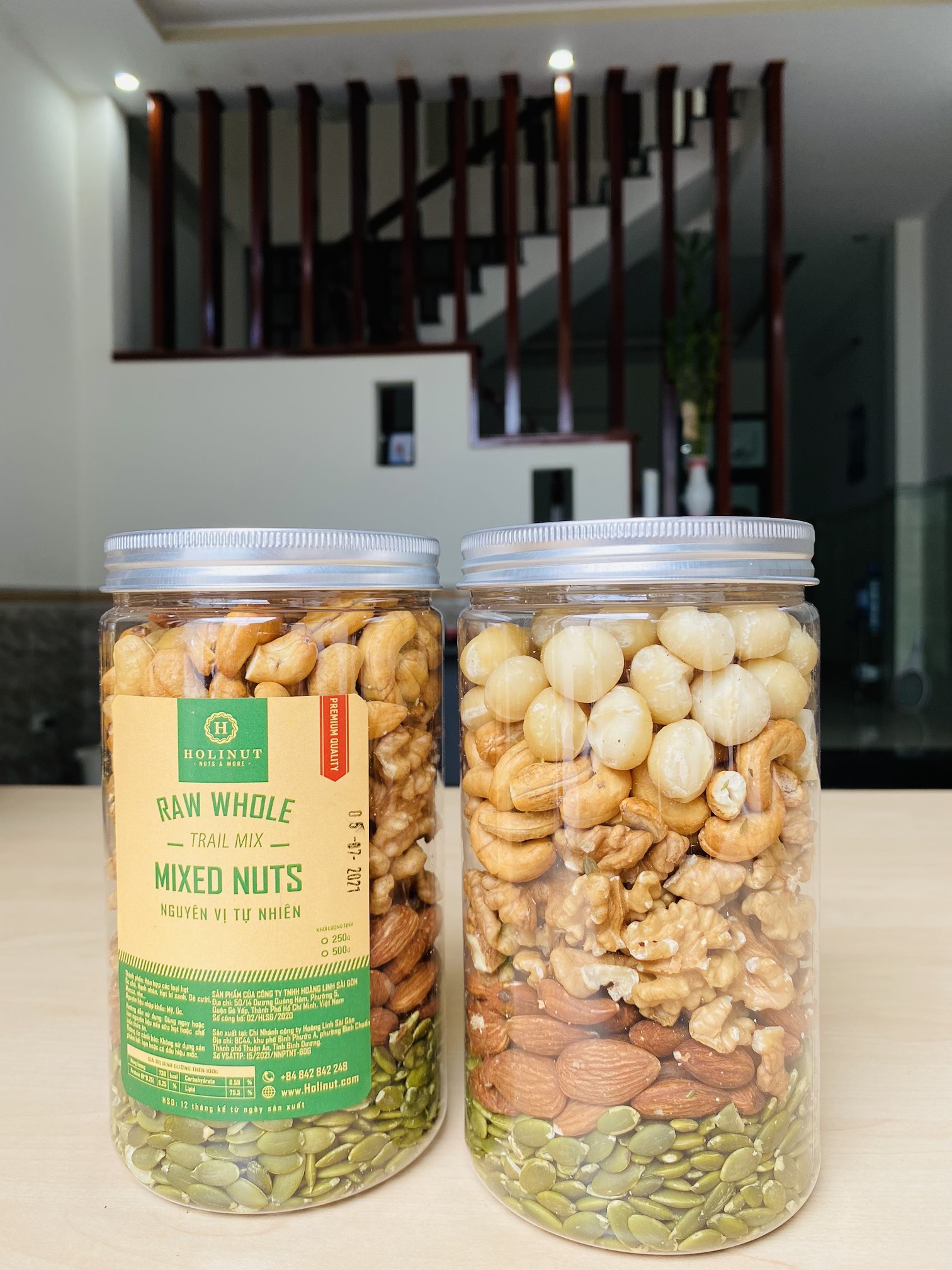 Mix hạt dinh dưỡng ăn liền tại Holinut Thành phần: Hạt bí rang, hạnh nhân rang mộc, nhân óc chó vàng, nhân macca, điều tách lụa. Quy cách: hũ/500gram Công dụng của 5 loại hạt mix