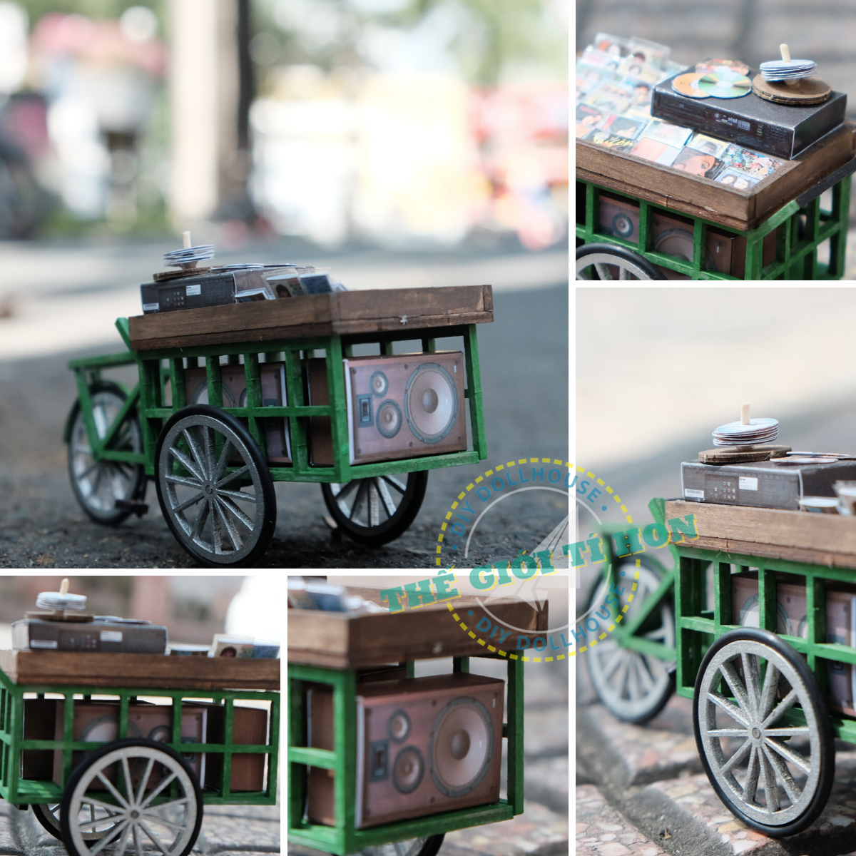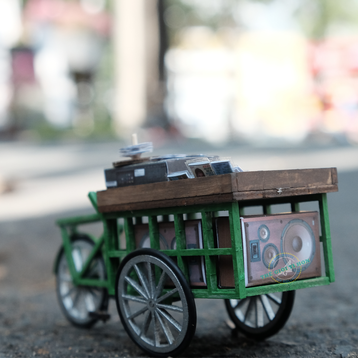 - SẢN PHẨM KHÔNG ÁP DỤNG ĐỔI TÊN BẢNG HIỆU GIÁ SẢN PHẨM CHƯA BAO GỒM THUẾ VAT, KHÁCH CẦN XUẤT VAT XIN VUI LÒNG LIÊN HỆ THẾ GIỚI TÍ HON QUA CHATBOX Mô Hình Sài Gòn Xưa Và Nay Thu Nhỏ - Xe Bán Đĩa Dạo - HR09 ** ĐƠN HÀNG XE HÀNG RONG KHÔNG ÁP DỤNG FREESHIP Cái thời internet còn chưa phát triển, muốn xem một bộ phim hay nghe nhạc… nhanh và sớm nhất chỉ còn cách mua đĩa thôi, thế là ở đất Sài Gòn thời ấy lại rộ lên một nghề mới – Bán đĩa dạo. Trên chiếc xe ba gác nhỏ đầy kín những đĩa nhạc đủ loại cũ mới và những phim hot hit thời đó, cùng với cái thùng loa nhỏ, cái đầu đĩa mini, vậy là đã đủ xịn xò để rong ruổi mưu sinh khắp phố phường Sài Gòn. Mô hình Xe Bán Đĩa Dạo Sài Gòn Thu Nhỏ - HR09 Tìm Hiểu Mô Hình Tí Hon Thông số mô hình Đánh giá độ khó Kích thước sản phẩm 12.0 x 4.0 x 6.0 CM (Dài x Rộng x Cao) Xuất xứ VIỆT NAM Cân nặng 0.2 Kg Nguyên vật liệu Gỗ, hoa cỏ khô, vải, giấy, kim loại, đèn Led, gốm sứ,nhựa,... Sản phẩm bao gồm Hộp Pin có công tắt, nguyên vật liệu lắp ráp, sách hướng dẫn. Phụ kiện làm mô hình (Mua riêng): Keo chuyên dụng + Mica Che Bụi + Bộ dụng cụ Kit...() Shop hỗ trợ lắp ráp luôn nếu bạn có nhu cầu (có phụ phí)