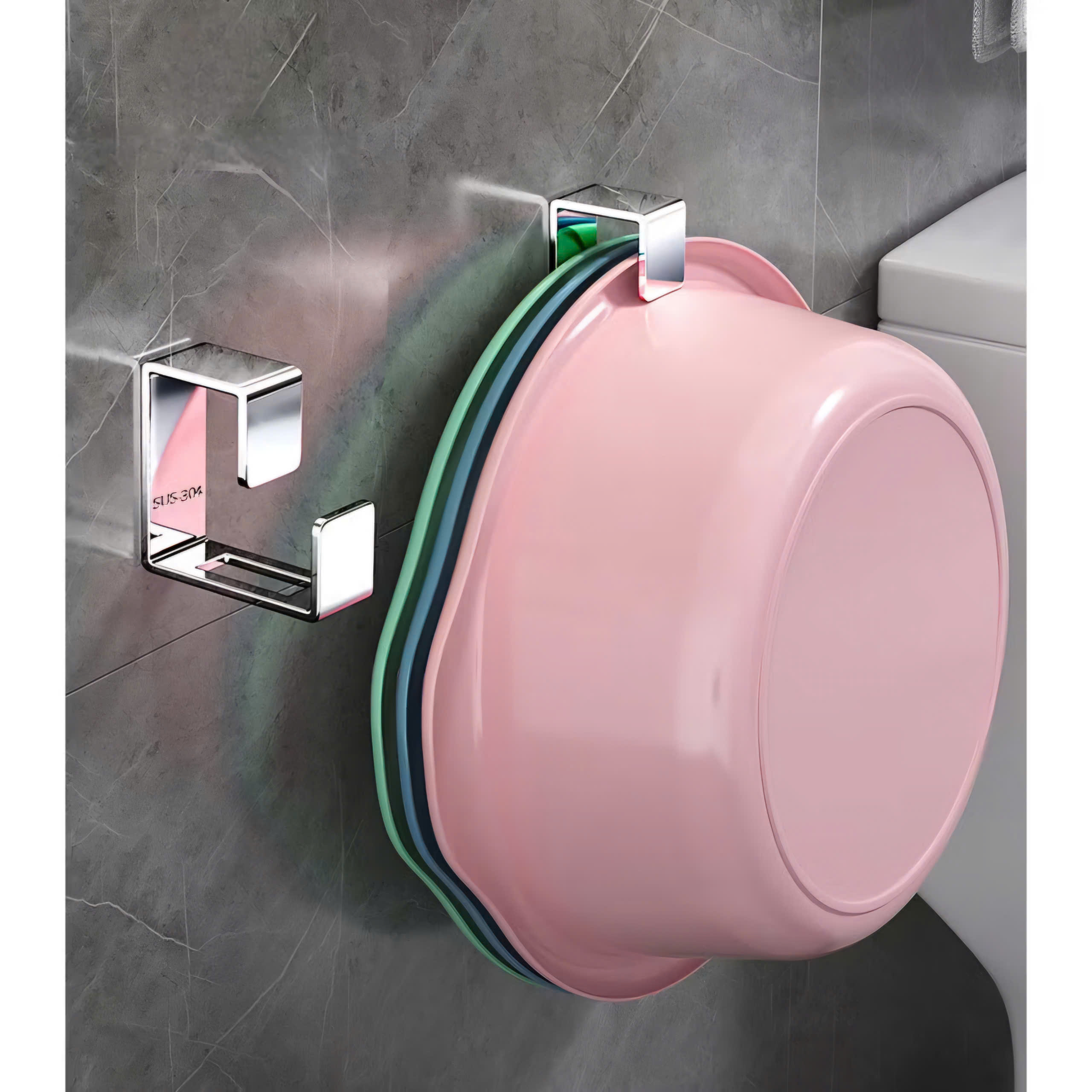 Móc Treo Chậu - Tặng Keo Gắn Tường Nhà Tắm, Treo Thau, Chậu Giặt, Móc Treo Đồ Đa Năng, Không Khoan Đục, Nhỏ Gọn. 2019