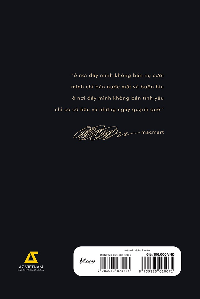 “Ở nơi đây mình không bán nụ cười mình chỉ bán nước mắt và buồn hiu ở nơi đây mình không bán tình yêu chỉ có cô liêu và những ngày quạnh quẽ.”