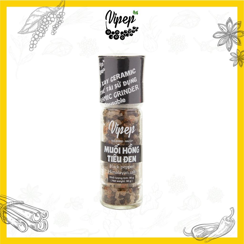 ✨Muối Hồng Himalaya Tiêu Đen Tự Nhiên Cối Xay Vipep Hũ Thủy Tinh 90g