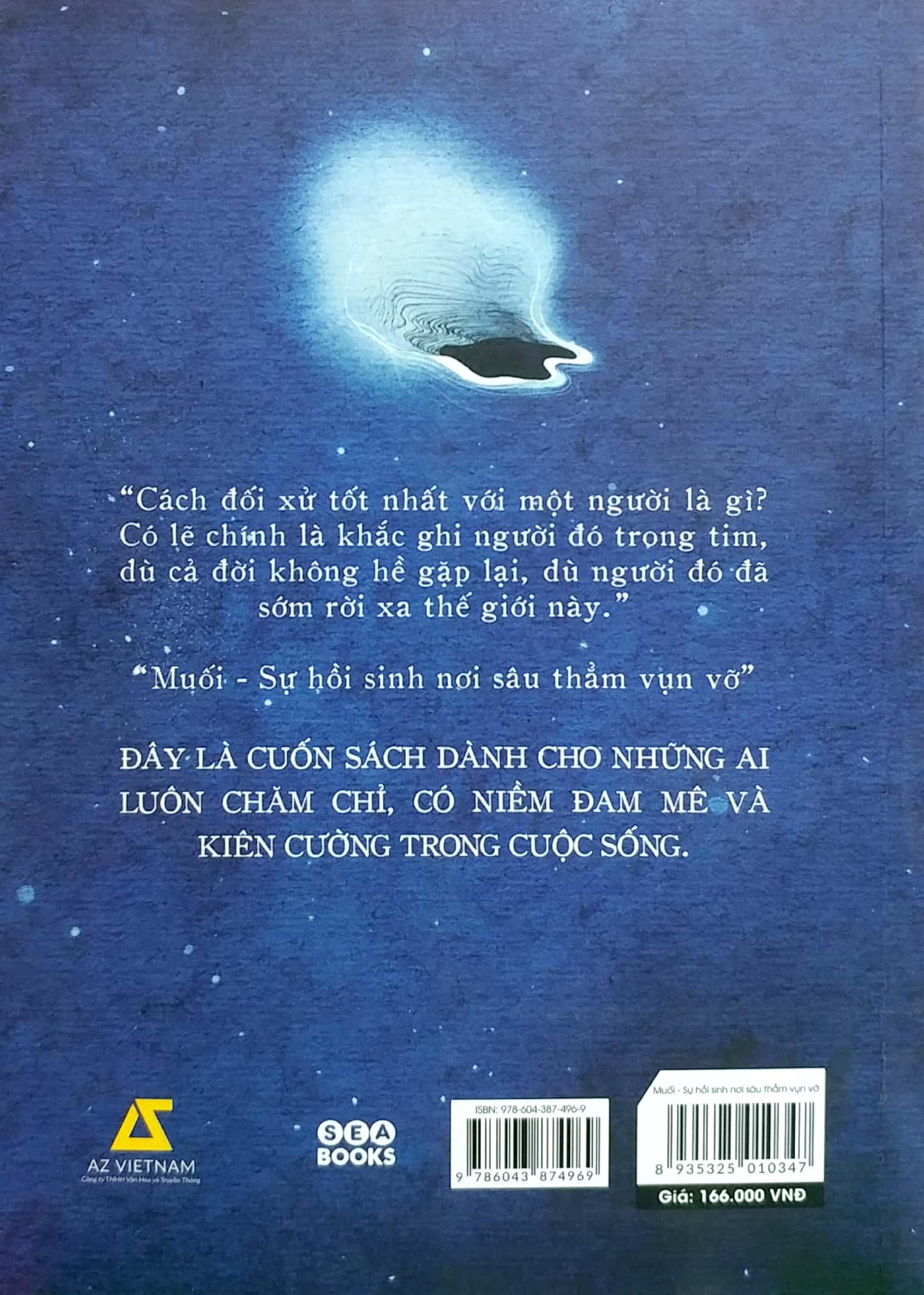 “MUỐI - Sự hồi sinh nơi sâu thẳm vụn vỡ” là cuốn sách tổng hợp của sự hợp tan vui buồn trên cõi đời này. Chúng ta là những con người đang sống - là những hạt muối nhỏ trên thế gian và đó chính là bản chất của cuộc đời. Nhưng sau cùng thì ở cõi nhân gian này được làm một hạt muối mạnh khỏe, bình an và hạnh phúc cũng là điều tốt nhất rồi.