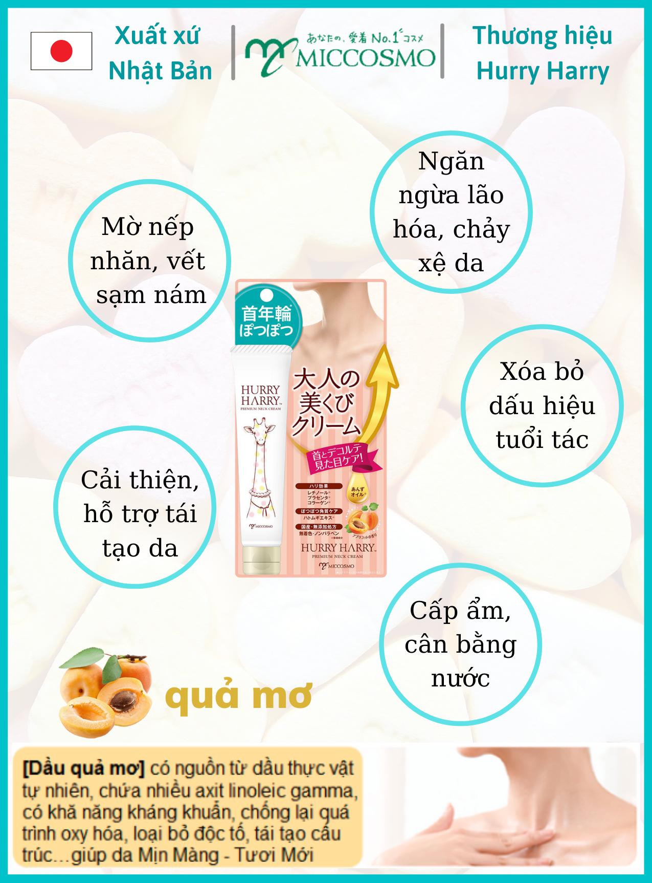 ✨[MỸ PHẨM NHẬT BẢN] Kem Dưỡng Da Cổ Nhật Bản MICCOSMO Hurry Harry 40g, Chiết Xuất Nhau Thai, Dưỡng Trắng, Chống Nhăn, Ngăn Ngừa Lão Hóa, Căng Bóng, Trẻ Hóa Da (HH01)