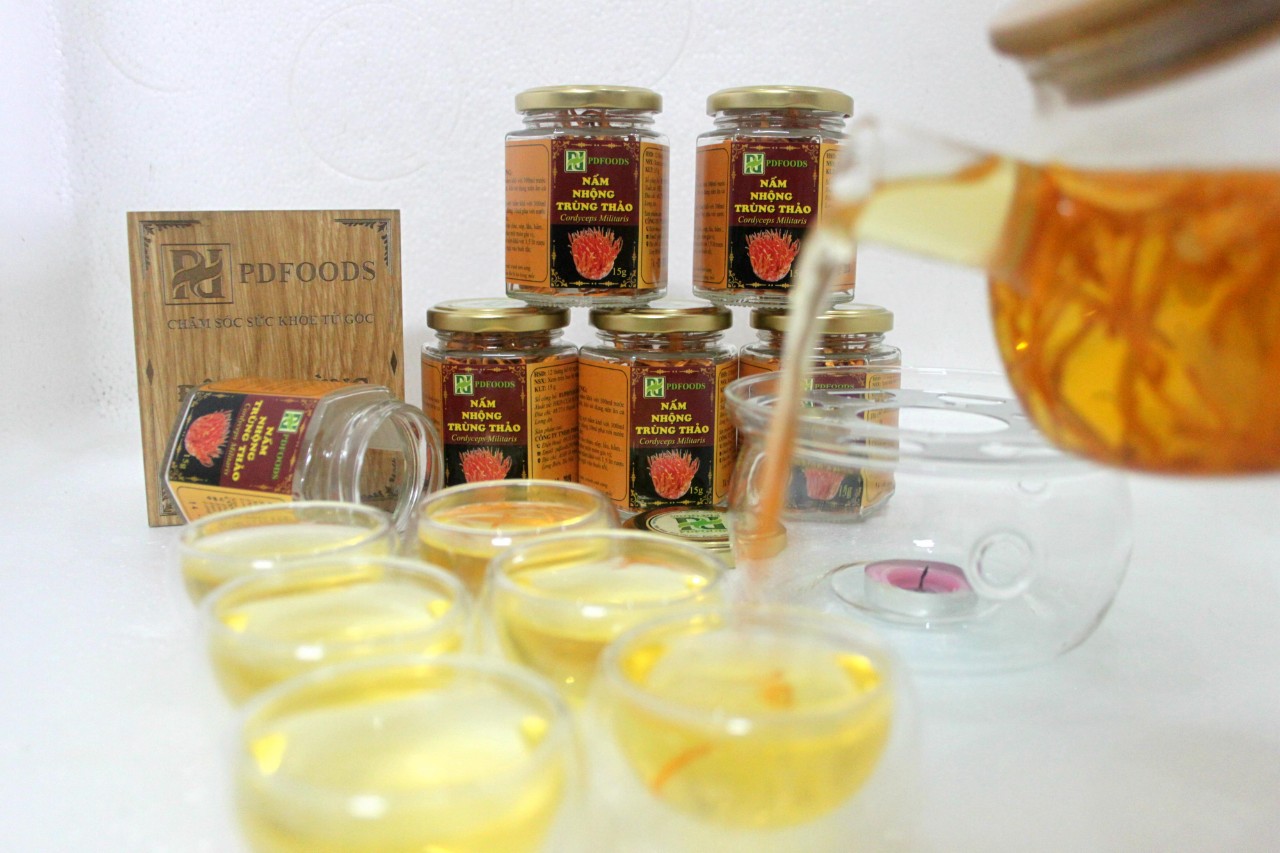 - Nấu ăn: có thể sử dụng để nấu chung với cháo, súp, lẩu, hầm… như một món gia vị, trước khi tắt bếp khoảng 3 ~ 5 phút. KHÔNG NÊN NHẦM LẪN GIỮA ĐÔNG TRÙNG HẠ THẢO VỚI NHỘNG TRÙNG THẢO Đông trùng hạ thảo Cordyceps sinensis là một chủng nấm túi Thitarodes spp. phân bố ở các vùng núi cao trên 4,000m ở Nepal và Vân Nam Trung Quốc. Nấm nhộng trùng thảo Cordyceps militaris là loài nấm ký sinh trên sâu, sâu bướm và một số loài khác có hình thức khá giống đông trùng hạ thảo. Việc nghiên cứu nấm nhộng trùng thảo hiện nay rất phổ biến và có thể nuôi cấy trên nhiều loại ký chú. Tuy nhiên, không được sử dụng tên “Đông trùng hạ thảo” mà phải sử dụng tên “Sâu tằm thảo” hay “Nhộng trùng thảo”. (Theo GS. Bùi Công Hiển, Tạp chí Khoa Học & Công Nghệ Việt Nam, số 3, 2018) Cám ơn quý khách đã tin tưởng và sử dụng sản phẩm của PDFoods!