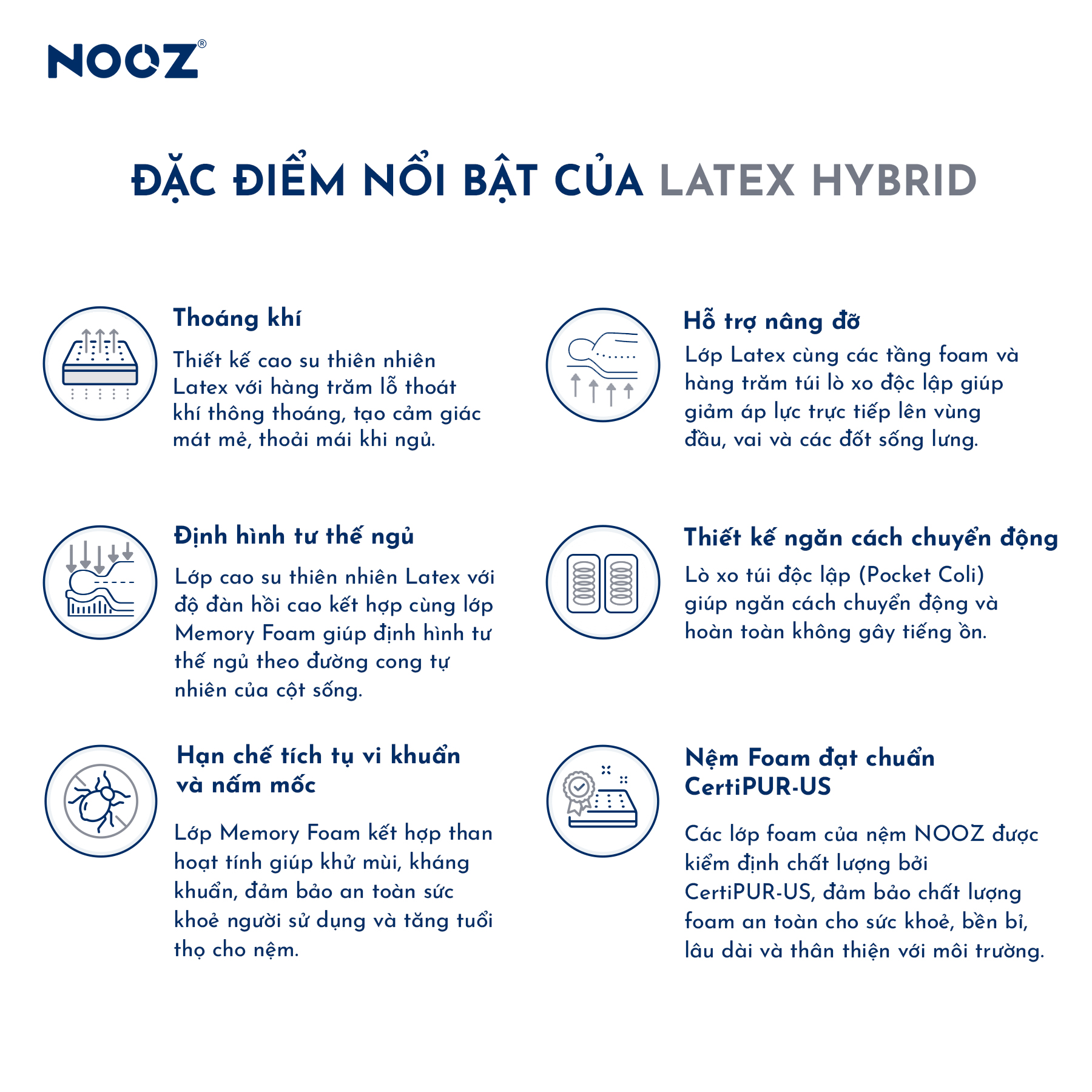 ✨Nệm Foam Hybrid Latex NOOZ Home Goods Mattress Đệm Với Tầng Lò Xo Túi Và Lớp Cao Su Non Thiên Nhiên