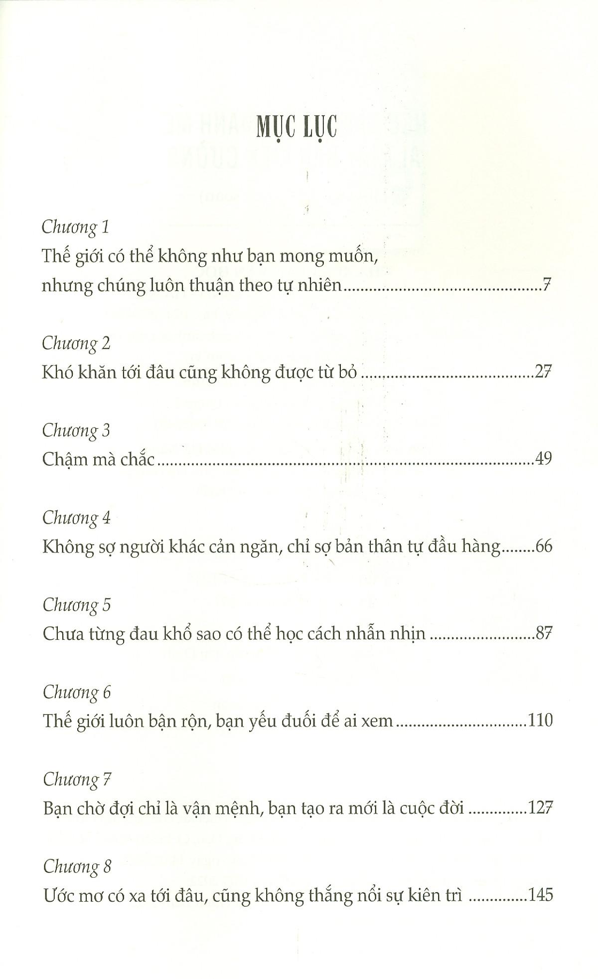 Nếu Bạn Không Mạnh Mẽ, Ai Thay Bạn Kiên Cường Không phải chặng đường nào cũng có người âm thầm ở bên bạn, không phải mỗi vấn đề khó đều có người kịp thời đưa tay giúp đỡ bạ Mong muốn vĩnh viễn núp bóng một ai đó để tránh mưa tránh gió dường như đã trở thành một thứ xa xỉ. Hơn nữa, nếu quả thực có một người tự nguyện che chở cho bạn, thì ai dám đảm bảo rằng, khi cơn bão thực sự ập tới, họ vẫn còn đứng bên bạn? Nếu thực sự muốn mạnh mẽ hơn, chắc chắn sẽ phải trải qua những ngày tháng không có ai giúp đỡ, không có ai ủng hộ. Đừng oán trách những đau khổ đó, chỉ cần cố gắng, tích lũy tất cả kinh nghiệm cuộc sống từ mỗi lần đau khổ, tâm hồn sẽ kết những bông hoa kiên cường.