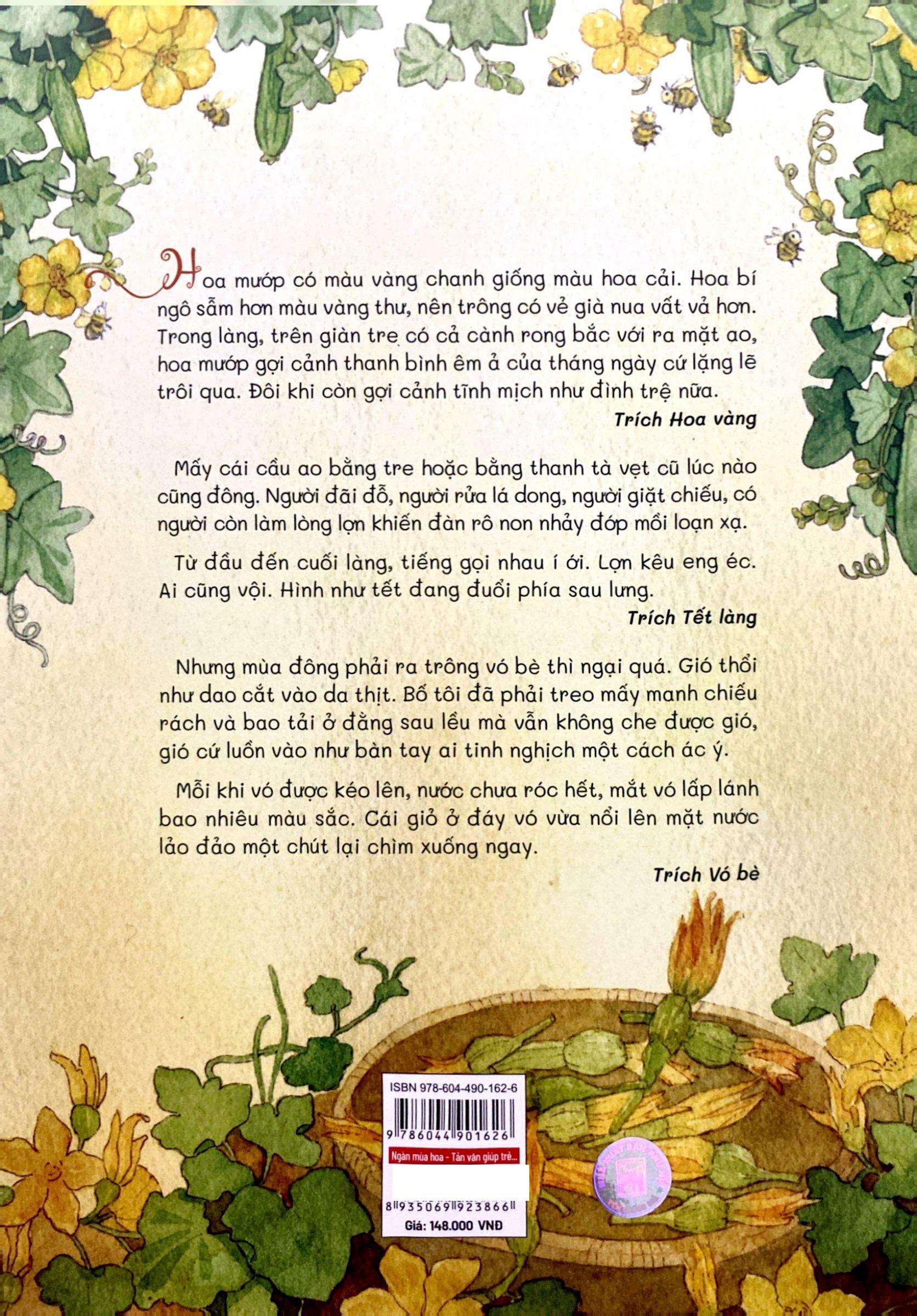 Ngàn mùa hoa còn là một bức tranh nhiều màu sắc sống động được tác giả phác họa bằng ngôn ngữ trong sáng, giản dị. Dưới ngòi bút của ông, màu không chỉ là xanh đỏ tím vàng, mỗi màu còn có nhiều thang bậc khác nhau “màu vàng chanh của hoa mướp, hoa cải, màu vàng thư của hoa bí ngô” (Hoa vàng), “Đỏ tía là hoa chuối, Đỏ tươi là hoa vông, hoa gạo. Màu đỏ của hoa hồng có quanh năm... Mùa hè hoa mào gà đỏ đến chói mắt. Hoa lựu như những đốm lửa lập lòe về mùa hè.” (Hoa đỏ). Đôi khi, ngòi bút của ông không chỉ vẽ hoa mà còn vẽ cây, vẽ lá dẫu chúng non nớt “chưa đủ màu xanh mà hãy còn hồng hồng như chưa biết cuộc đời làm lá” (Rau láo nháo).