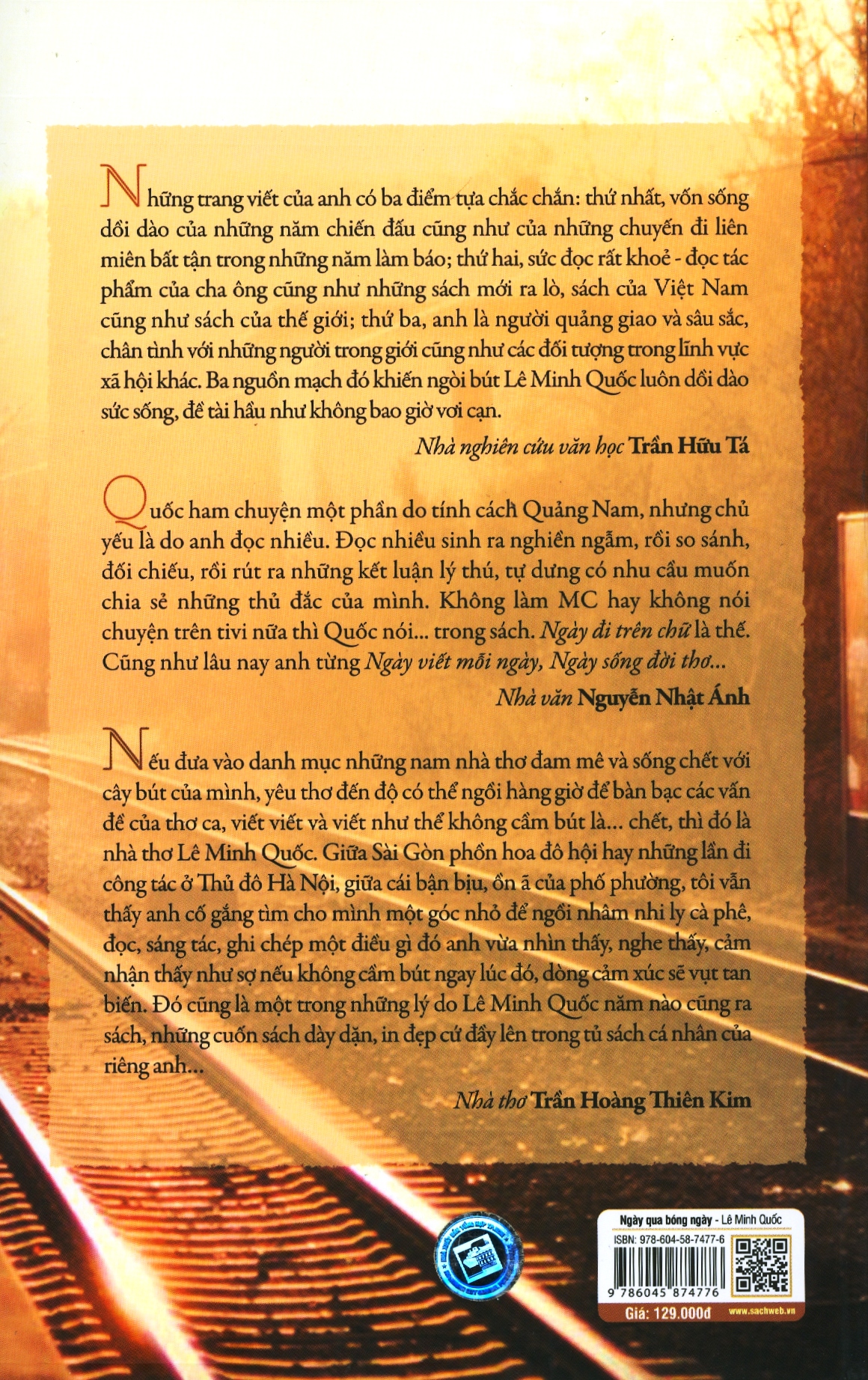 THÔNG TIN PHÁT HÀNH Tác giả: Phạm Trung Tuyến Nhà xuất bản: Hội nhà văn Số trang: 228 Kích thước: 14x20.5 cm Ngày phát hành: 12-2021 GIỚI THIỆU SÁCH Mỗi ngày ta sống
