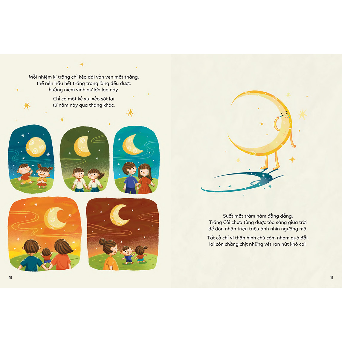 Bé có biết một nơi gọi là Ngôi Làng Trăng Méo trên trời cao? Ngôi làng diệu kì là nơi ở của hàng trăm mặt trăng? Mỗi năm, bạn trăng đẹp nhất sẽ được chọn để tỏa sáng trong đêm Trung Thu. Chỉ có một bạn trăng chưa bao giờ được chọn vì ngoại hình xấu xí, là Trăng Còi. Thất vọng, chú thường trốn vào những áng mây sống đời buồn tủi.