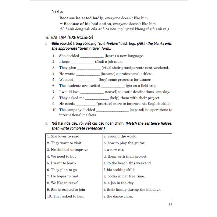 Bên cạnh việc giải thích kỹ càng các kiến thức ngữ pháp, sách còn đưa vào nhiều ví dụ minh họa và các dạng bài tập phù hợp để các em thực hành. Việc rèn luyện các bài tập này là vô cùng hữu ích bởi nó không những giúp các em sử dụng thành thạo các cấu trúc ngữ pháp mà còn giúp các em tự tin để đạt điểm tốt hơn trong các bài kiểm tra định kì.