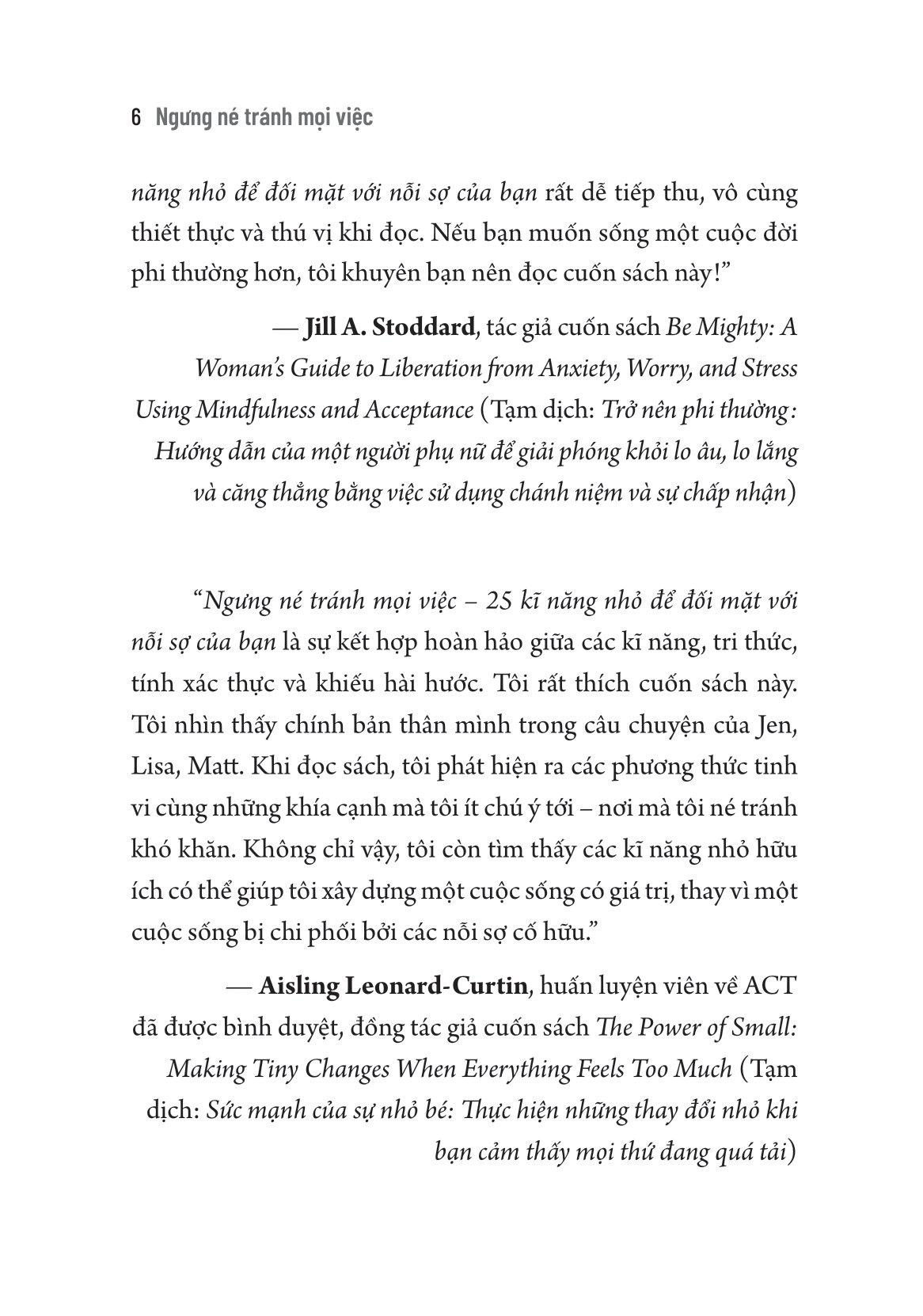 Ngưng né tránh mọi việc - 25 kĩ năng nhỏ để đối mặt với nỗi sợ của bạn sẽ tạo ra sự khác biệt nếu độc giả làm theo những kĩ năng nhỏ được giới thiệu trong cuốn sách này.