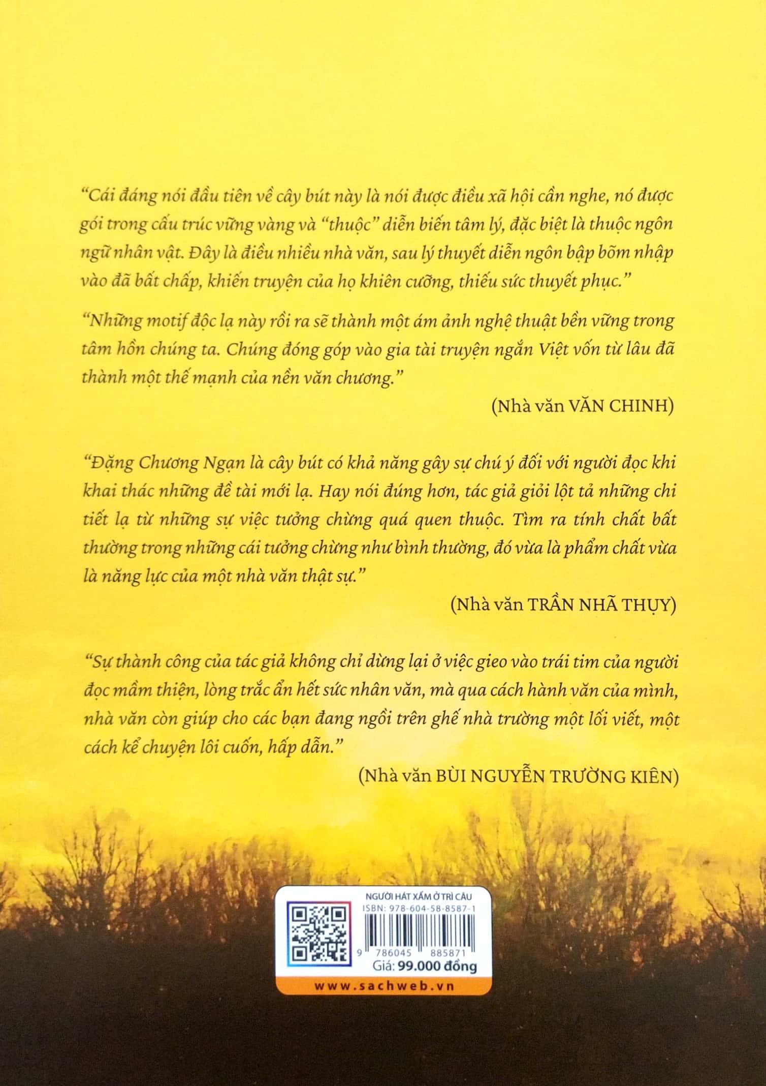 Hát xẩm là loại hình nghệ thuật dân gian, là nghề sống của các nghệ nhân đồng thời là người tham dự vào đời sống tinh thần của xã hội. Người hát xẩm thường là người mù hoặc khiếm thị. Nhưng những lời họ hát thì trong sáng, giàu ân tình và bóng gió với thói hư tật xấu, đấu tranh với cường quyền và cái ác nói chung; có thể gọi các nghệ nhân hát xẩm là những minh triết nhân gian, là những kẻ khiếm thị lành mạnh. Đặt tên tập truyện của m.ình là Người hát xẩm ở Trì Câu, phải chăng Đặng Chương Ngạn muốn tự khiêm, rằng m.ình chỉ là nhà văn của nhân quân, dưới đáy; không đủ tinh tường để phát kiến những điều to tát mà ông chỉ lắng nghe, chắp nhặt rồi kể lại những chuyện, những minh triết nhân gian đã kết tinh rồi lan truyền như một kẻ hát rong, hát xẩm?