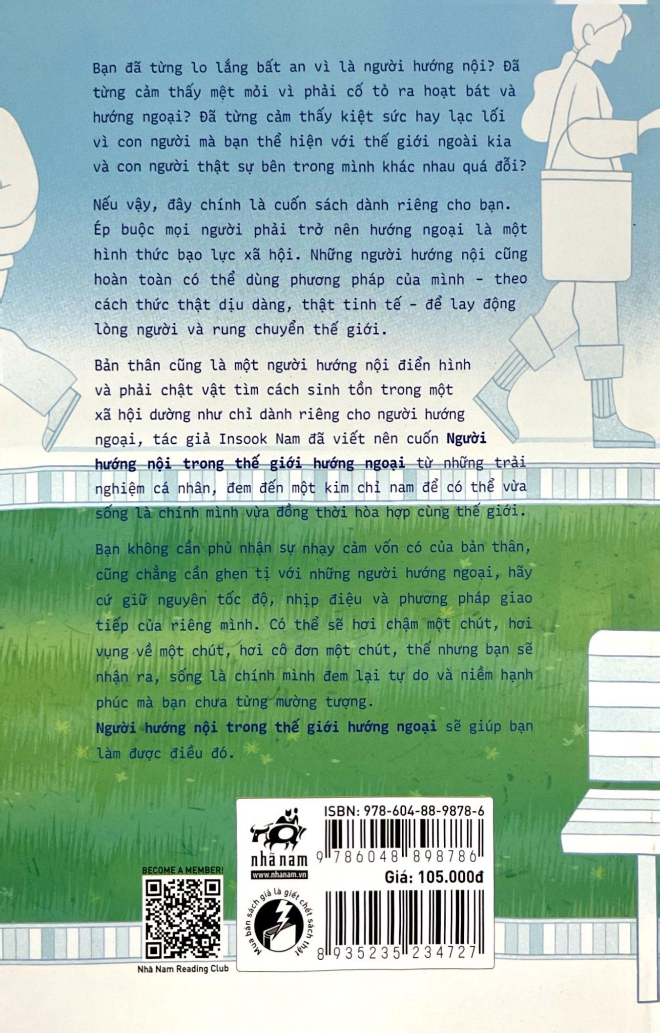 Bản thân cũng là một người hướng nội điển hình và phải chật vật tìm cách sinh tồn trong một xã hội dường như chỉ dành riêng cho người hướng ngoại, tác giả Insook Nam đã viết nên cuốn Người hướng nội trong thế giới hướng ngoại từ những trải nghiệm cá nhân và đem đến cho tất cả những người hướng nội một kim chỉ nam để có thể vừa sống là chính mình vừa đồng thời hòa hợp cùng thế giới.