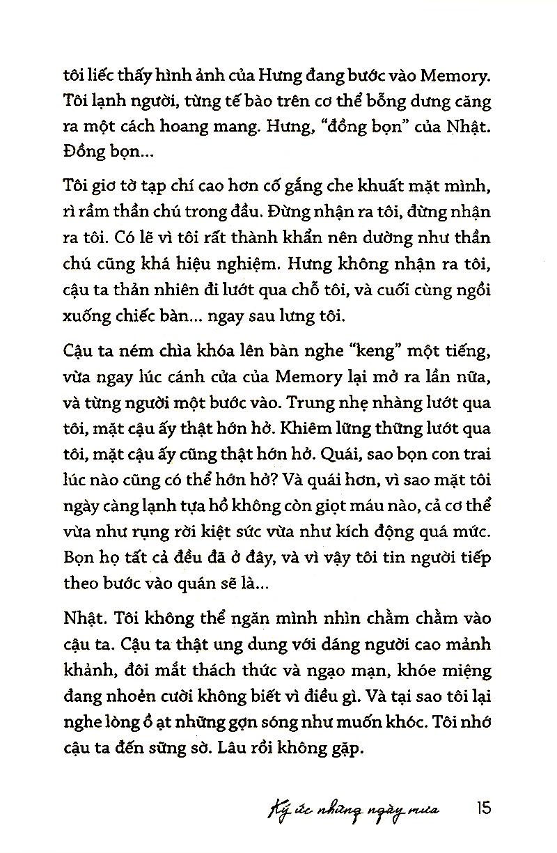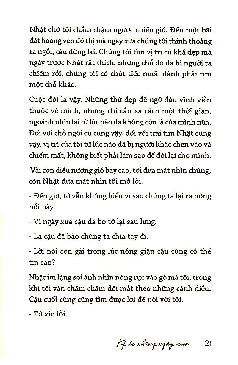 Người Kể Chuyện Tình Trên Phố Yêu Đương Phố Yêu Đương là tên gọi của một con đường sâu hun hút, dài thăm thẳm, và xa vời vợi. Giữa những năm tháng thanh xuân xem yêu thương như hơi thở, có những người bộ hành trẻ chỉ vừa đi qua vài căn nhà mà đã cảm thấy mỏi mệt thê lương, người khác lại vội vàng mừng rỡ ngỡ đâu đã tìm thấy nơi cần tìm là bến bờ hạnh phúc. Nhưng không phải vậy. Không bao giờ đơn giản như vậy. Quán trà Ký Ức là một quán nước nhỏ được dựng bằng gỗ, tọa lạc ở lưng chừng chặng đường của cuộc viễn du. Quán trà kỳ lạ này chỉ bắt đầu mở cửa hoạt động vào lúc trời tắt nắng, và duy nhất một cô gái trẻ có gương mặt khả ái với mái tóc màu khói tết thành bím dài thả sang một bên, là chủ nhân đồng thời là người phục vụ, đợi bạn dừng chân ghé vào ngơi nghỉ, sẽ thong thả vừa pha chế vừa kể cho bạn nghe vài câu chuyện tình nơi đó chốn đây. Và cô gái trẻ khả ái với mái tóc màu khói tết thành bím dài thả sang một bên đó, luôn tự gọi mình là… … Người Kể Chuyện Tình Trên Phố Yêu Đương.