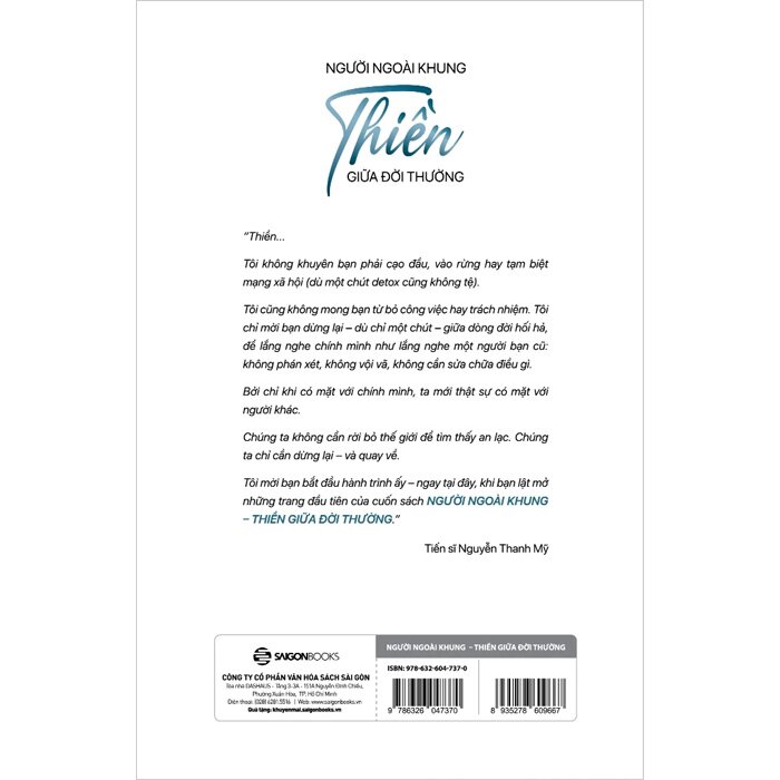 Từ góc nhìn của một nhà khoa học, một “doanh nông” giản dị, một người khởi nghiệp ở tuổi 60 và chọn gắn bó phần đời còn lại với nông dân quê hương, tác giả Nguyễn Thanh Mỹ sẽ cho người đọc hiểu thế nào là “thiền giữa đời thường” và “sống thiền” thực sự ra sao.