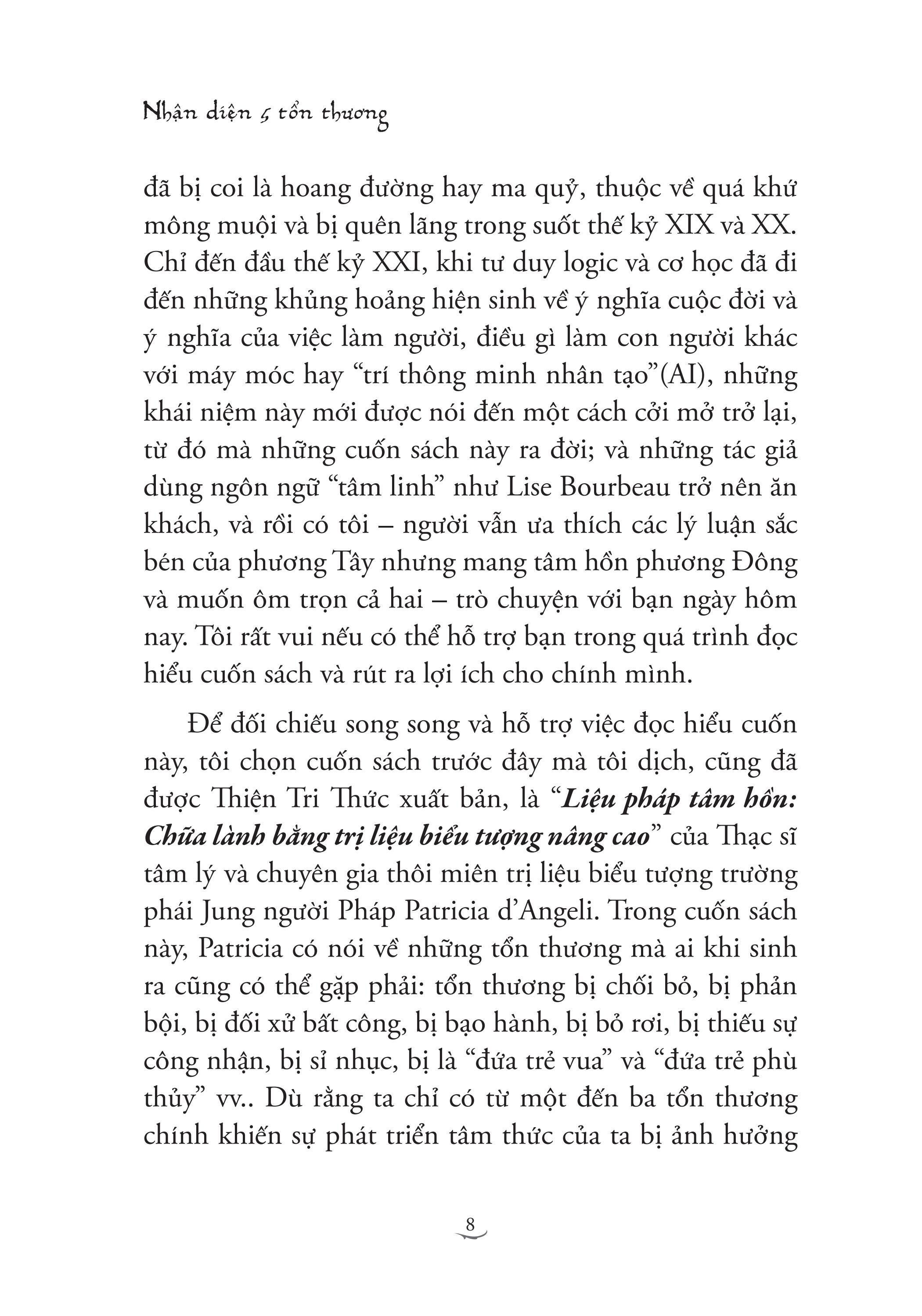 Lise Bourbeau là tác giả nổi tiếng toàn cầu, bà đã viết 20 cuốn sách, trong đó có nhiều đầu sách best-seller về chủ đề lắng nghe cơ thể và nhận diện những tổn thương bên trong. Sách của bà được dịch ra gần 20 ngôn ngữ trên thế giới. Từ khi thành lập trường phái nghiên cứu của m.ình vào năm 1982, những tư tưởng của bà đã giúp đỡ rất nhiều người cải thiện chất lượng cuộc sống và tạo ra những thay đổi bền vững hàng ngày. Lắng nghe cơ thể bạn, trường phái phát triển bản thân có sức ảnh hưởng lớn nhất ở Quebec, đã được truyền bá trong các buổi hội thảo trên hơn 20 quốc gia và trong 10 thứ ngôn ngữ. Bộ sách “Nhận diện 5 tổn thương” và “Chữa lành 5 tổn thương” là hai trong số rất nhiều đầu sách best-seller của bà.