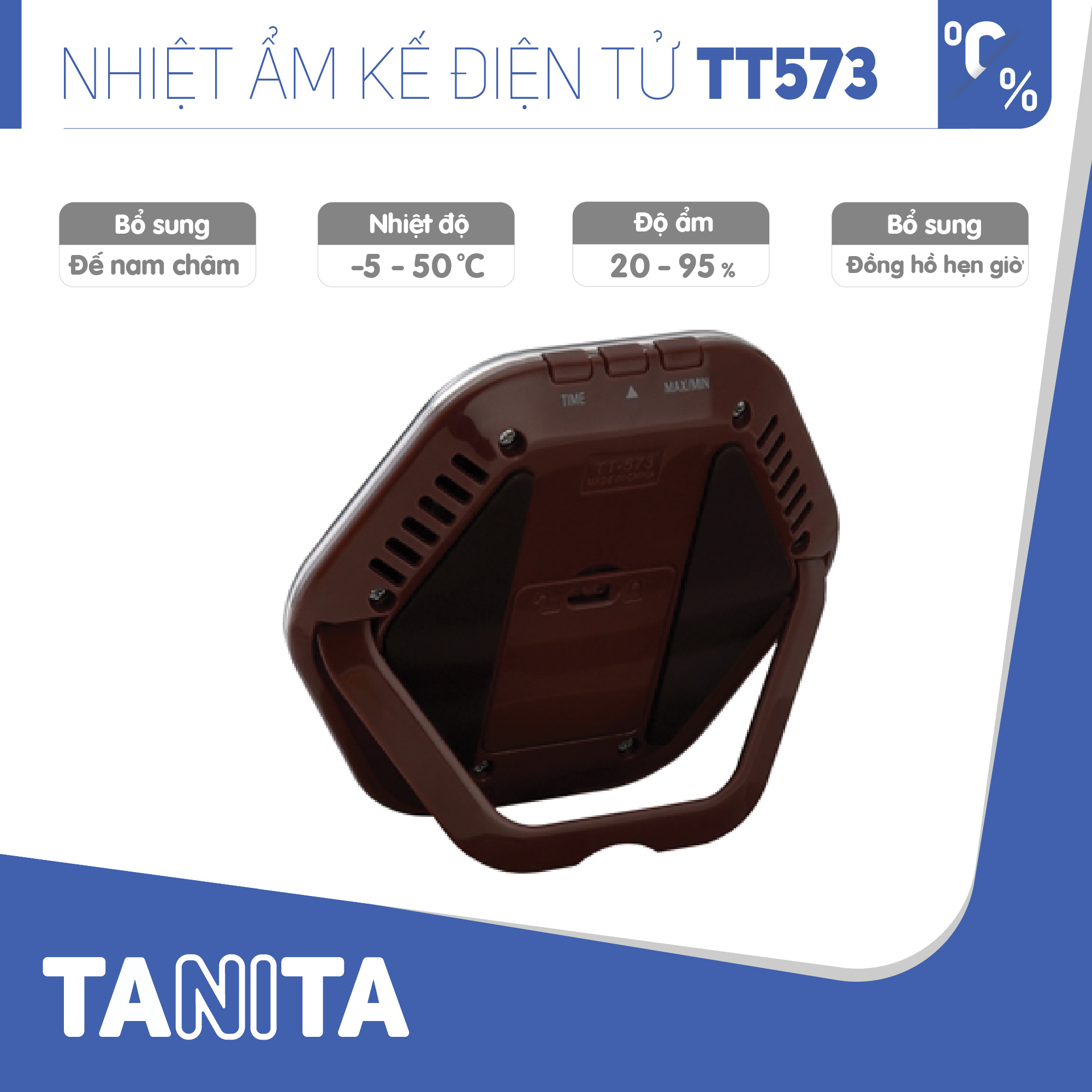 Nhiệt ẩm kế điện tử Tanita TT-573, sản phẩm mới cải tiến hơn rất nhiều về chất lượng và độ chính xác, thích hợp sử dụng cho gia đình và các phòng thí nghiệm. Tanita – luôn đứng đầu về các sản phẩm đo lường, thương hiệu số 1 tại Nhật Bản.