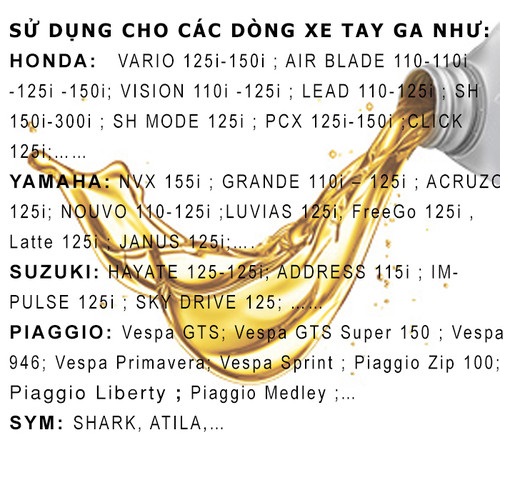 - Nhớt số dành cho xe tay ga Dầu nhớt bôi trơn bộ truyền động sau cần có tính năng chịu tải và chống mài mòn các bánh răng.