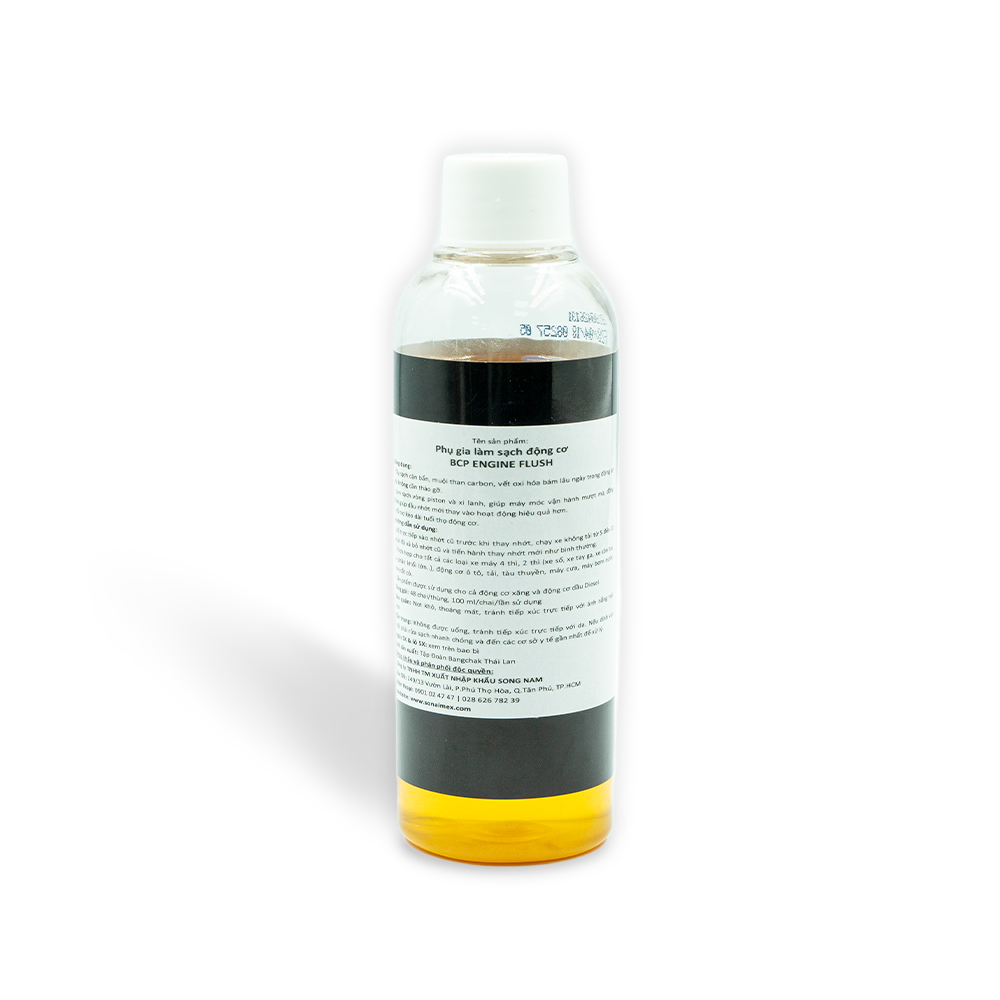 • Thu gom và xử lý đúng cách sau sử dụng để bảo vệ môi trường. Không vứt bao bì, không đổ dầu nhớt xuống đất, nguồn nước   Dung dịch vệ sinh động cơ BCP Engine Flush 100 mL Phụ gia bảo dưỡng xe máy chất lượng cao - Nhập khẩu Thái Lan  BCP Engine Flush là dung dịch làm sạch động cơ cao cấp được thiết kế để loại bỏ cặn bẩn, vết bám và cặn cacbon cho cả động cơ xăng và động cơ diesel, kể cả máy công nghiệp. Sản phẩm được sử dụng thường xuyên mỗi lần thay dầu nhớt. Dung dịch có công thức dầu gốc khoáng chất lượng cao kết hợp cùng chất tẩy rửa và phụ gia phân tán làm sạch hiệu quả. LỢI ÍCH SẢN PHẨM: