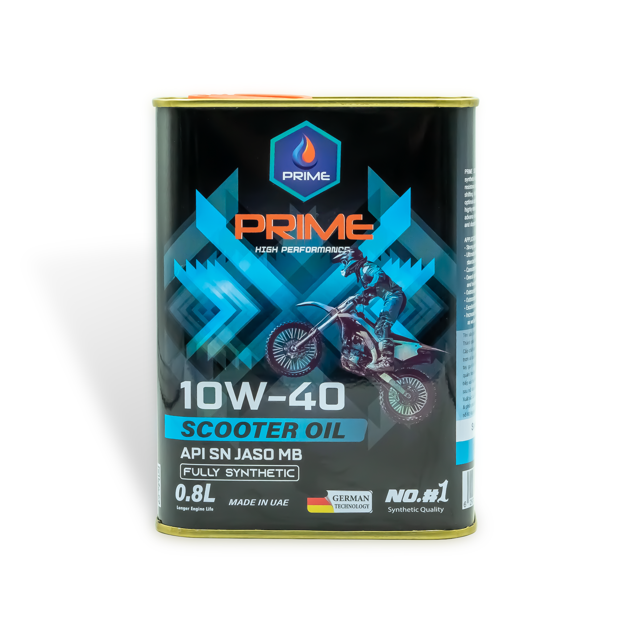NHỚT XE TAY GA TỔNG HỢP TOÀN PHẦN PRIME SAE 10W40, API SN, JASO MB, FULLY SYNTHETIC LON 800ML NHẬP KHẨU 100%, CÔNG NGHỆ SẢN XUẤT ĐỨC