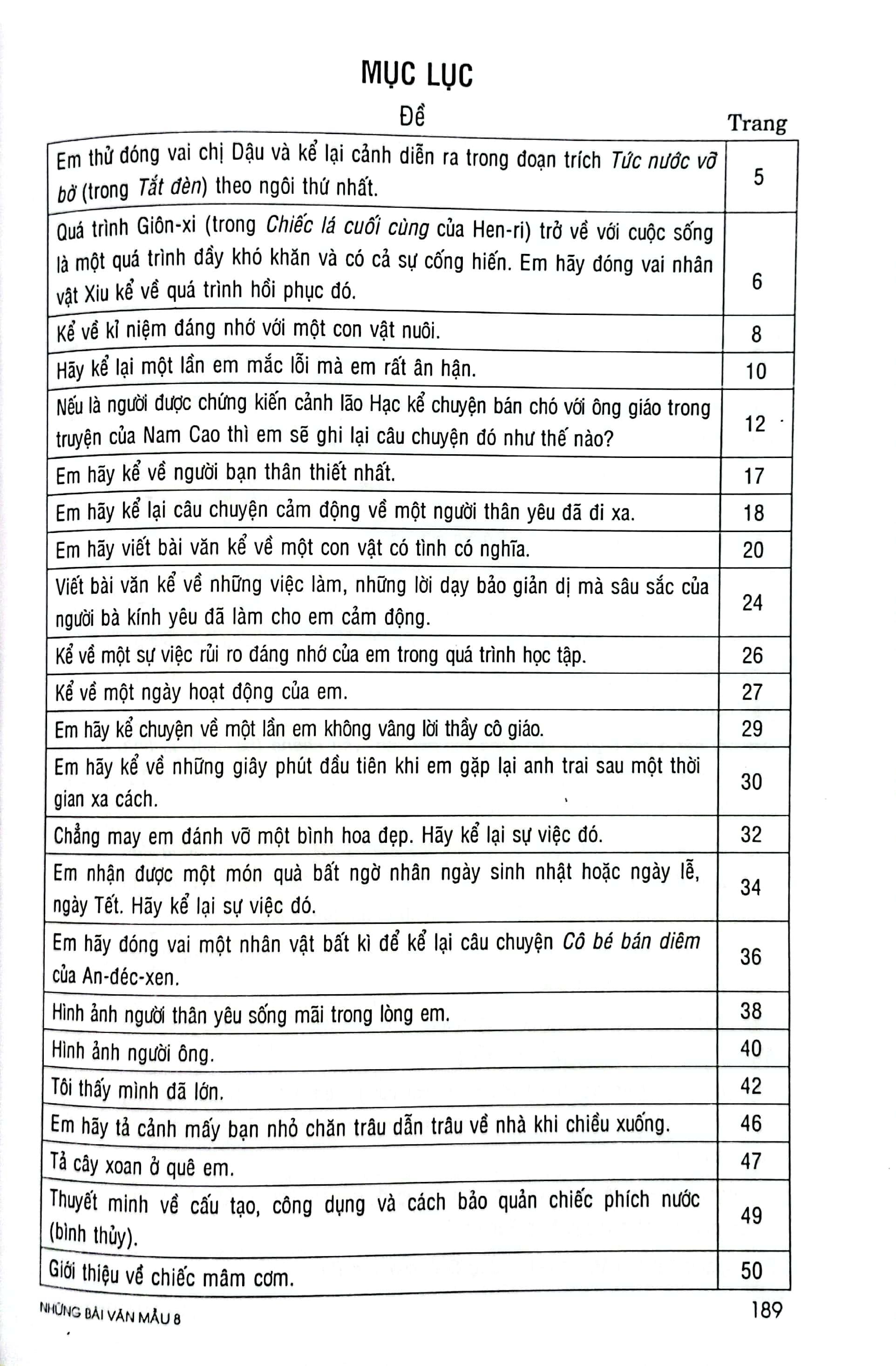 Những Bài Văn Mẫu 8 Cuốn sách tuyển chọn và giới thiệu đến các em những bài văn mẫu hay. Nội dung sách gồm bám sát chương trình Ngữ văn lớp 8 hiện hành. Các