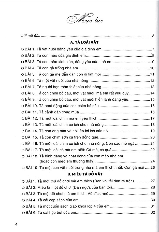 Những bài văn miêu tả được chọn lọc sẽ là tài liệu đọc tham khảo quý báu đối với các em học sinh lớp 4 gần xa, dùng để tự đọc và tự học, vươn lên học khá, giỏi.