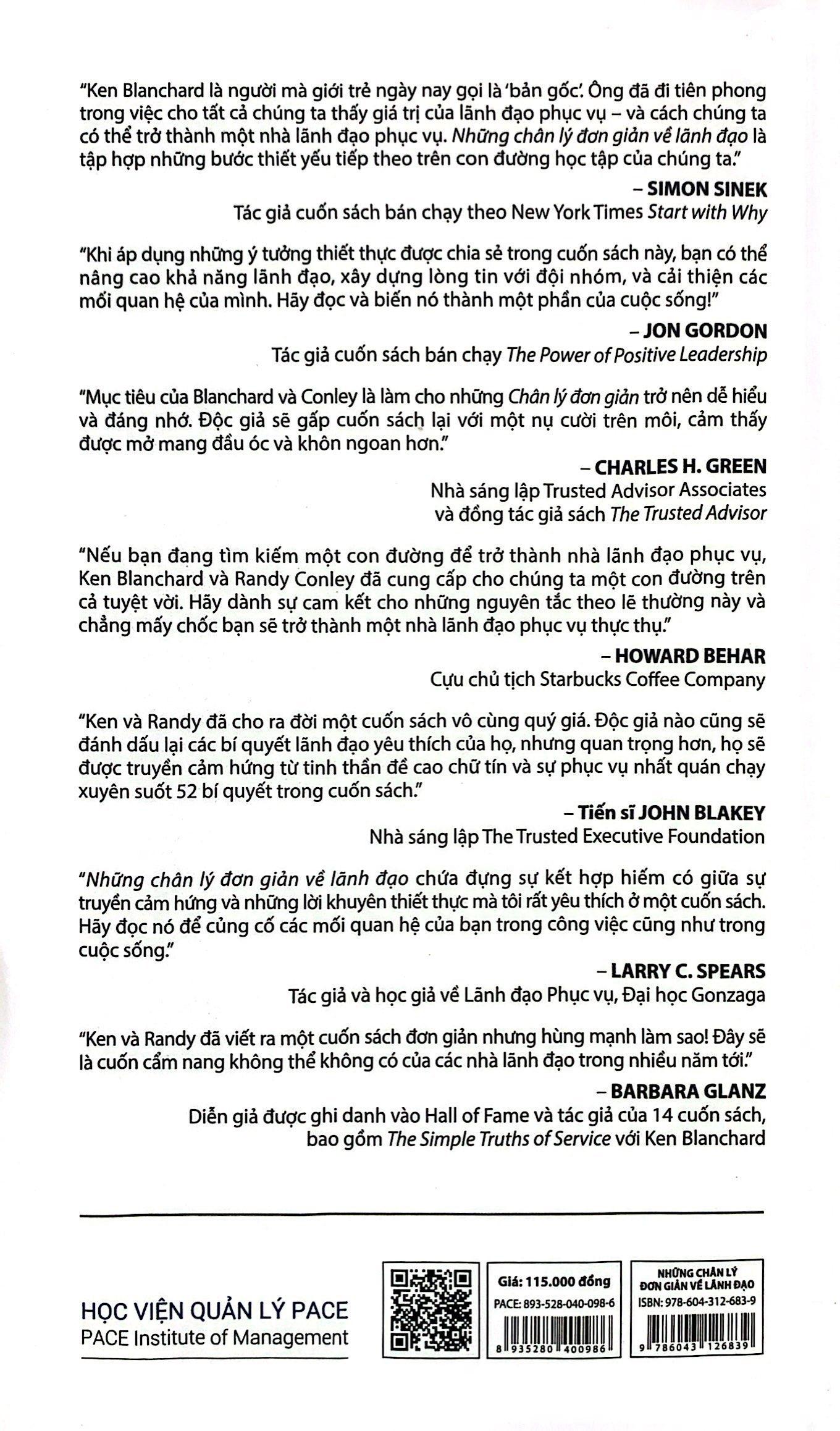 Trong “Những chân lý đơn giản về lãnh đạo”, chuyên gia huyền thoại về lãnh đạo phục vụ là Ken Blanchard, tác giả của những cuốn sách đã bán được hàng triệu bản trên toàn thế giới, và đồng nghiệp Randy Conley, người được cả thế giới biết đến và công nhận vì nhiều năm nghiên cứu về lãnh đạo tư tưởng cũng như sự tinh thông về lĩnh vực “lòng tin”, cùng chia sẻ 52 chân lý đơn giản về lãnh đạo. Những chân lý này sẽ giúp các nhà lãnh đạo ở khắp mọi nơi biến “lãnh đạo theo lẽ thường” thành những thông lệ.