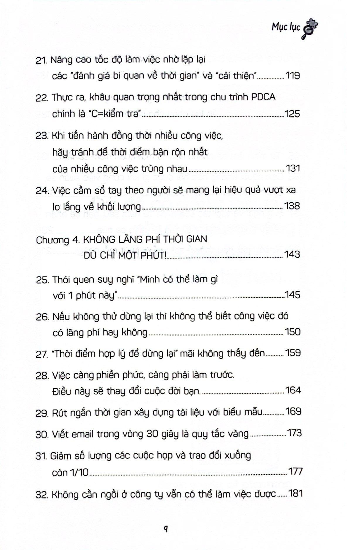 Trong cuốn sách, tác giả đã chỉ ra những kỹ năng để quản lý thời gian hiệu quả, làm việc có kế hoạch để luôn chủ động trong công việc và cuộc sống.