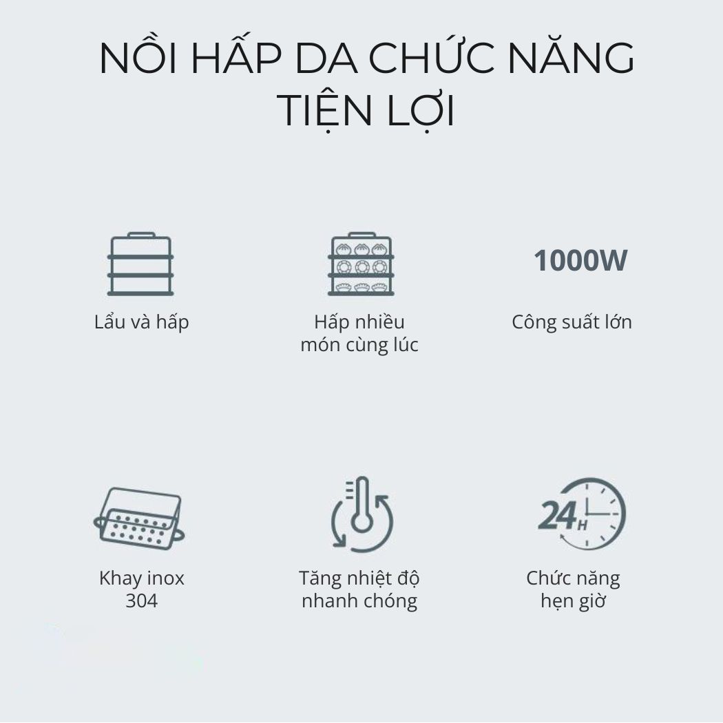 Nấu nướng đa năng: Nồi có thể sử dụng để nấu lẩu, nấu cháo, hấp thực phẩm,... giúp bạn tiết kiệm thời gian và công sức nấu nướng.