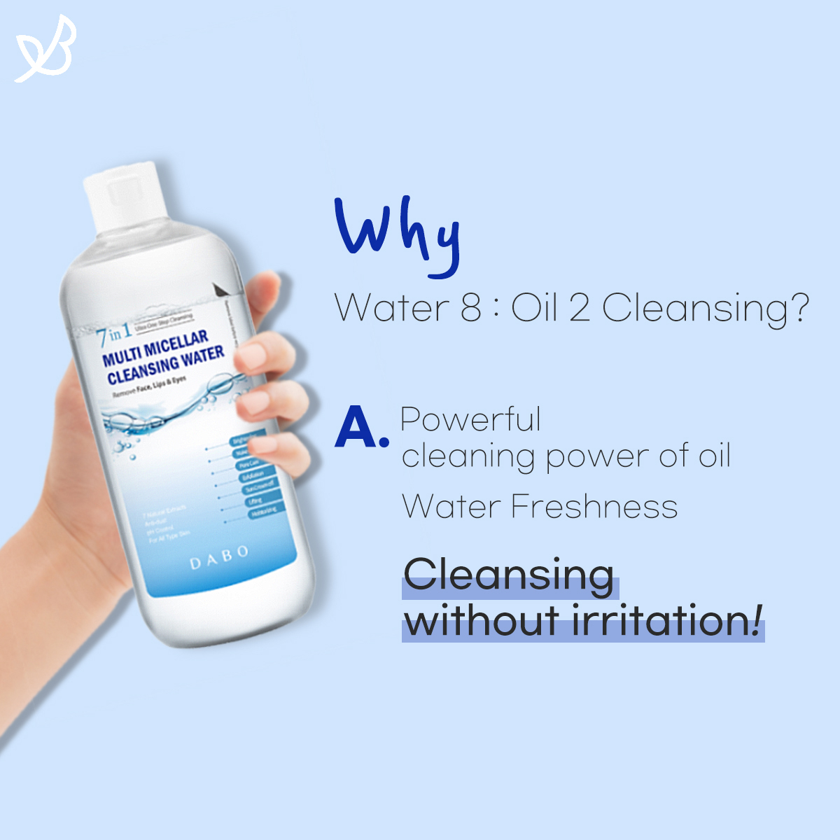 Công dụng: Nước tẩy trang đa năng 7 tác dụng DABO MULTI MICELLAR WATER chiết xuất từ thành phần thiên nhiên như tinh chất Collagen, Trà xanh, Dầu dừa, Hương thảết hợp với công nghệ Mi-xen tăng cường oxy (Micellar) hoạt động như nam châm thông minh tự động hút sạch các lớp cặn trang điểm, bụi bẩn, tăng cường khả năng hấp thu oxy từ đó hỗ trợ quá trình sản sinh Collagen mà không lấy đi độ ẩm tự nhiên của da, không gây kích ứng da, không gây rát, không gây nhờn, không gây khô da. Đặc biệt còn giúp da mặt săn chắc, thu nhỏ lỗ chân lông, làm sạch lớp da chết, bổ xung độ ẩm cho da. Sản phẩm dùng để làm sạch lớp kem Chống nắng, lớp trang điểm trên Da mặt, vùng Mắt, Môi. Thích hợp với mọi lại da.