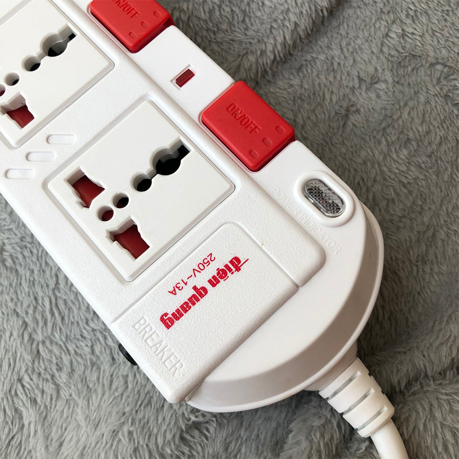 Ổ cắm nối dài đa năng cao cấp Dây dẫn ĐỒNG NGUYÊN CHẤT, ĐÚNG TIẾT DIỆN 100% Bảo vệ quá tải bằng công tắc tự động (MINI CB) Tiếp điểm sử dụng nguyên liệu đồng