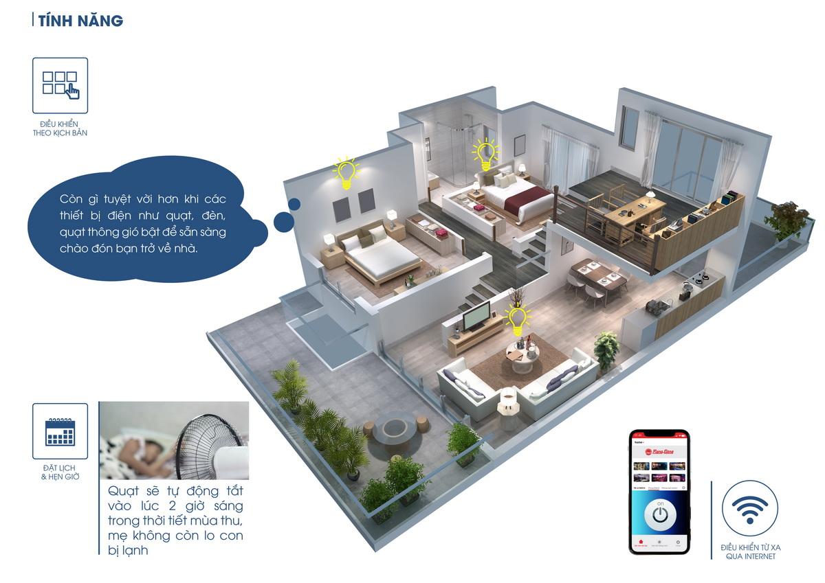 Có thể điều khiển từ xa và theo dõi trạng thái bật/tắt của thiết bị thông qua ứng dụng trên điện thoại, bạn sẽ không còn phải lo lắng khi ra khỏi nhà mà quên tắt điện.