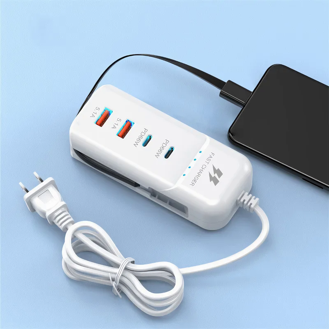 . Trạm sạc tất cả trong một bao gồm 4 cổng, 2 cổng USB-A QC3.0 và 2 cổng Type-C PD để sạc nhanh cho nhiều thiết bị.