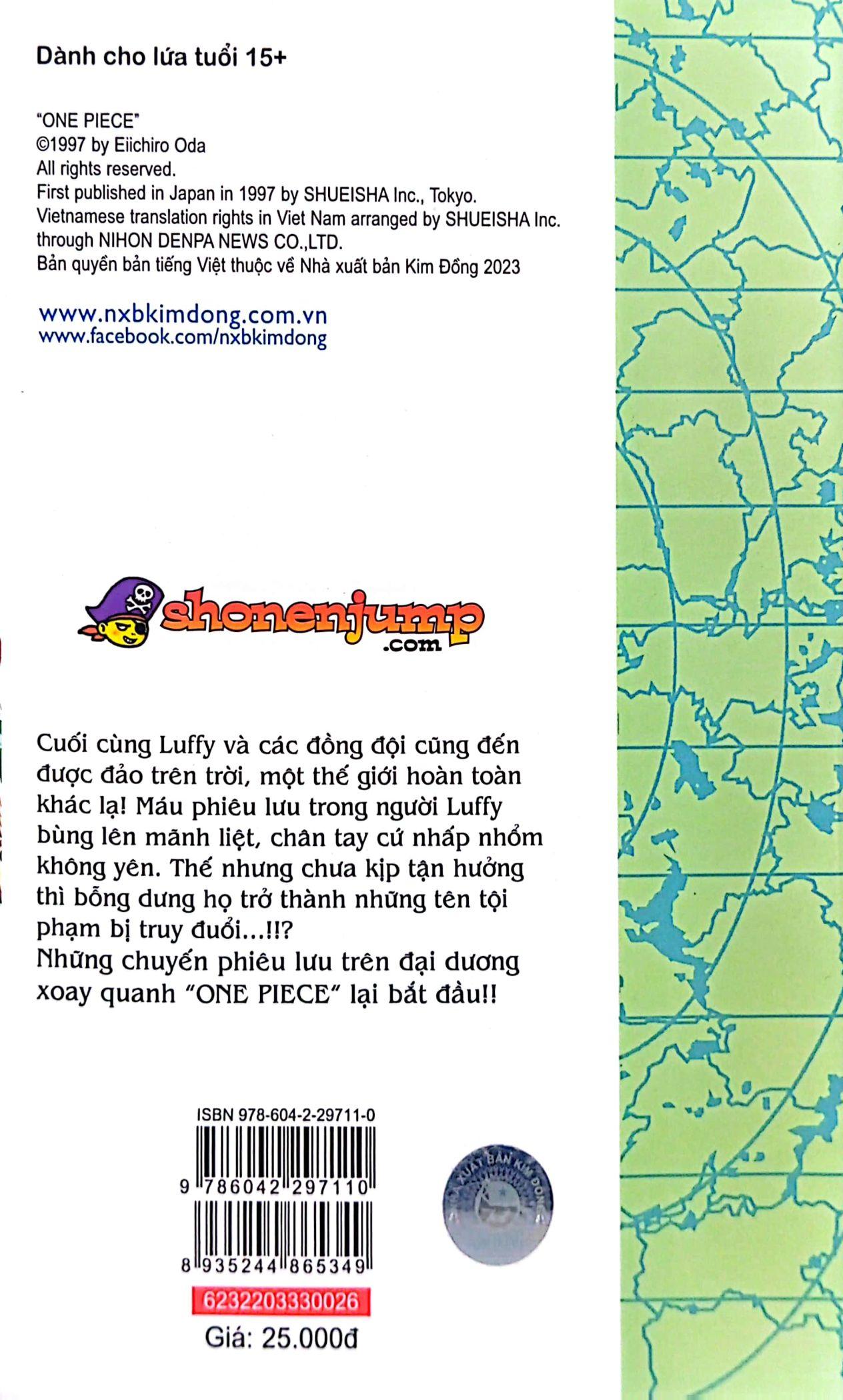 Cuối cùng Luffy và các đồng đội cùng đến được đảo trên trời, một thế giới hoàn toàn khác lạ! Máu phiêu lưu trong người Luffy bùng lên mãnh liệt, chân tay cứ nhấp nhổm không yên. Thế nhưng chưa kịp tận hưởng thì bỗng dưng họ trở thành những tên tội phạm truy đuổ!!?? Những chuyến phiêu lưu trên đại dương xoay quanh "One Piece" lại bắt đầu!!