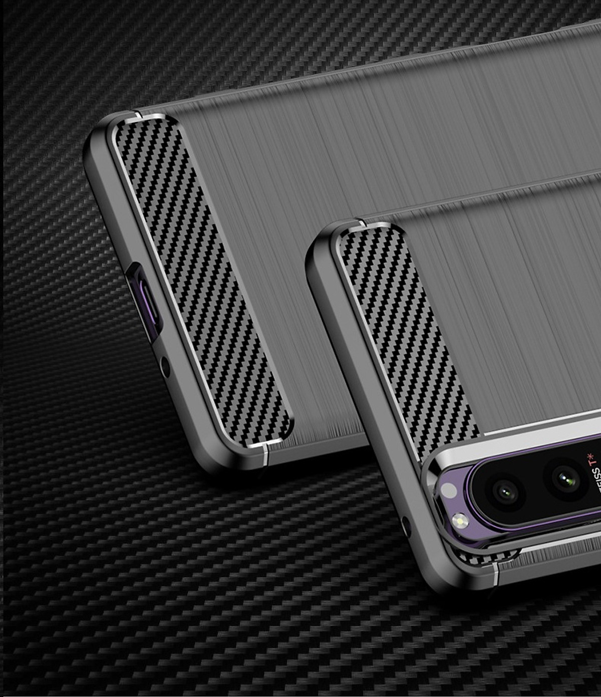 Ốp lưng chống sốc Sony Xperia 5 Mark 5 Vân Sợi Carbon được thiết kế với 2 dải carbon trên dưới tuyệt đẹp, độc đáo, sang trọng Ốp lưng được làm từ chất liệu nhựa mềm TPU cho khả năng chống sốc và tháo lắp dễ dàng thiết kế xung quanh vát 2.5D làm bóng như những đường cắt kim cương rất sang trọng Cho bạn cảm giác cầm rất bám tay, không bị bám vân tay và chống xước cực tốt