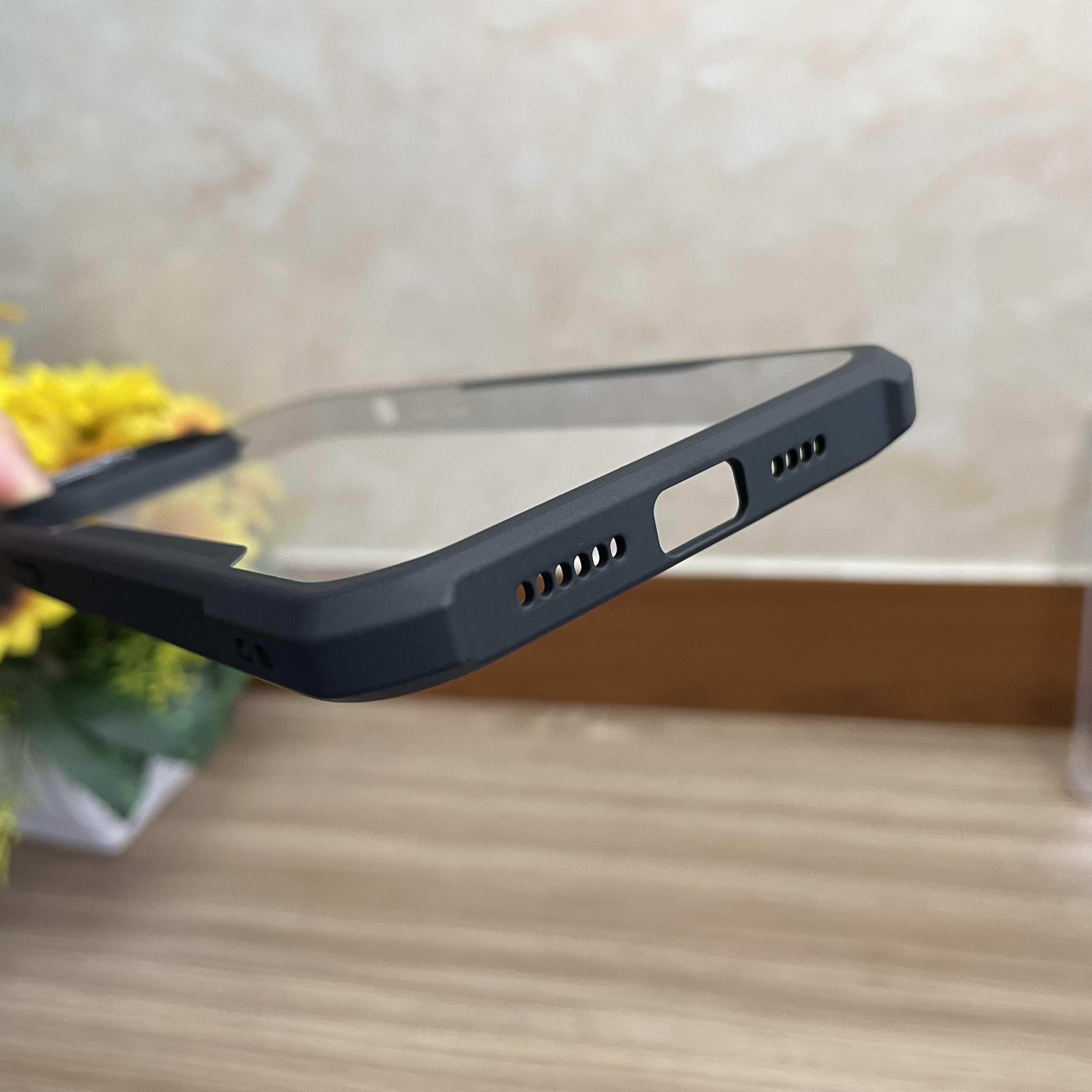 Ốp lưng trong suốt chất liệu PC viền mềm, không ố vàng trong quá trình sử dụng, chống sốc tốt. Với mặt lưng từ nhựa PC trong suốt giữ nguyên màu máy, xung quanh viền cao hơn camera nên không lo camera điện thoại bị trầy xước. Viền nhựa TPU mềm màu sắc hài hòa, tạo điểm nhấn ấn tượng. Xung quanh bốn góc của ốp lưng cũng được làm dày hơn giúp chống sốc cho điện thoại an toàn.