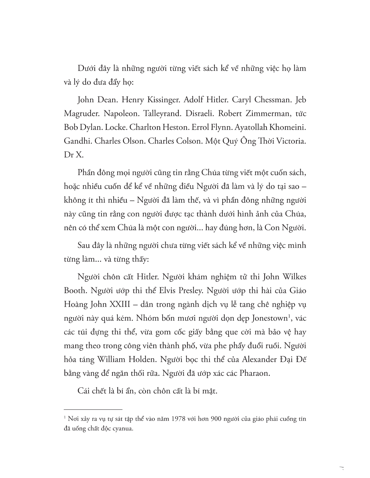 Pet Sematary - Nghĩa Địa Thú Cưng   Khi Tiến sĩ Louis Creed nhận một công việc mới và đã cùng cả gia đình chuyển đến thị trấn nông thôn bình dị ở Ludlow, Maine. Ngay cả khi đã yên ấm trong căn nhà mới, Louis vẫn không thể tin nổi khởi đầu tuyệt vời này đã trở thành sự thật. Bất chấp sự yên bình của vùng quê Ludlow, nơi đây vẫn tiềm ẩn một mối nguy đang rình rập. Những chiếc xe tải lao vun vút trên con đường phía bên ngoài ngôi nhà cổ xinh đẹp của Creed vì một điều…   Khu nghĩa địa tạm bợ trong khu rừng gần đó, nơi nhiều thế hệ trẻ em đã chôn cất những con thú cưng yêu quý của chúng.   Ngay sau đó, Louis liên tiếp nhận được những lời cảnh báo từ cả thực tế lẫn từ sâu thẳm trong cơn ác mộng của anh rằng anh đừng mạo hiểm vượt ra ngoài ranh giới của nghĩa địa nhỏ này, cũng là vị trí của một khu chôn cất khác với những lời hứa đầy hấp dẫn và ma mị.   Louis đã bước chân vào hành trình khám phá ra sự thật bị che giấu ấy – một sự thật còn đáng sợ hơn chính cái chết.   Về tác giả:   Stephen King là tác giả của hơn 60 cuốn sách, tất cả đều là những cuốn sách bán chạy nhất trên toàn thế giới. Các tác phẩm gần đây của ông bao gồm Fairy Tale, Billy Summers, If It Bleeds, The Institute, Elevation, The Outsider, Sleeping Beauties (viết chung với con trai Owen King), và bộ ba phim Bill Hodges: End of Watch, Finders Keepers và Mr. Mercedes (chiến thắng Giải thưởng Edgar cho Tiểu thuyết hay nhất). Cuốn tiểu thuyết 22/11/63 được The New York Times Book Review bình chọn là cuốn sách hay nhất của năm 2011 và giành được Giải thưởng Sách của Thời báo Los Angeles cho thể loại Bí ẩn / Kinh dị. Các tác phẩm The Dark Tower, It, Pet Sematary và Doctor Sleep của ông đã được chuyển thể thành phim, với It hiện là phim kinh dị có doanh thu cao nhất mọi thời đại. Ông là người đã nhận được Giải thưởng Thành tựu trọn đời của Hiệp hội Nhà xuất bản Âm thanh năm 2020, Giải thưởng Dịch vụ Văn học PEN Hoa Kỳ năm 2018, Huy chương Nghệ thuật Quốc gia năm 2014 và Huy chương của Quỹ Sách Quốc gia năm 2003 cho những đóng góp xuất sắc cho nền văn học Hoa Kỳ. Anh sống ở Bangor, Maine, với vợ, tiểu thuyết gia Tabitha King.   Đánh giá về cuốn sách   Hai lần được chuyển thể thành phim (1989 và 2019). Pet Sematary bản 1989 được đánh giá là một trong những phim kinh dị "cult culture" (những bộ phim không được giới phê bình đánh giá cao, không có doanh thu lớn, không được công chúng yêu thích, nhưng được một nhóm nhỏ yêu thích cuồng nhiệt). Nhận được tận 6,6 điểm trên IMDb, có số lượng DVD bán ra rất chạy, và được nhắc đến nhiều trong các bộ phim khác. Đây là một trong những tiểu thuyết kinh dị xuất sắc và mang tính biểu tượng nhất của Stephen King.   “Hoang dại, rùng rợn và gây bấn loạn” là những tính từ mà tờ The Washington Post Book World đã dùng để miêu tả về cuốn sách bán chạy số 1 theo bình chọn của New York Times này.   Một thước phim hành động nghẹt thở! Một trong những tiểu thuyết kinh dị xuất sắc và mang tính biểu tượng nhất của Stephen King.   “Cuốn tiểu thuyết đáng sợ nhất của Stephen King.” —Publishers Weekly   “Một tác phẩm gây choáng vá King đã khiến chúng ta phải tin những điều không tưởng.” —Detroit News   “Day dứt, cuộn trào, thuyết phục và đầy ấn tượng!” —Pittsburgh Press