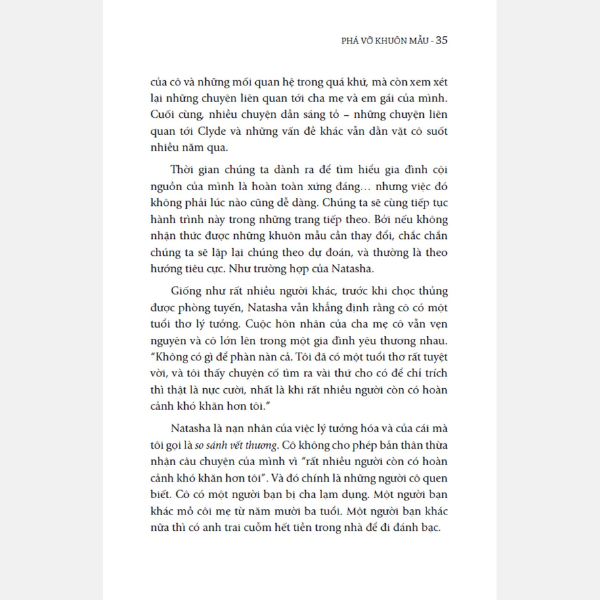 Trong cuốn sách “Phá vỡ khuôn mẫu” (tựa gốc: The Origins of You), tác giả Vienna Pharaon, nhà trị liệu hôn nhân và gia đình sẽ từng bước dẫn dắt bạn tìm hiểu về vết thương cội nguồn của mình. Tác giả cũng sẽ giúp bạn đi tìm nguyên nhân vì sao những câu chuyện, những mối quan hệ trong gia đình vẫn tiếp tục ảnh hưởng đến cuộc sống hiện tại và tương lai của bạn, của con cái bạn; và cách áp dụng phương pháp Chữa lành tận gốc để bạn thoát ra khỏi khuôn mẫu này.
