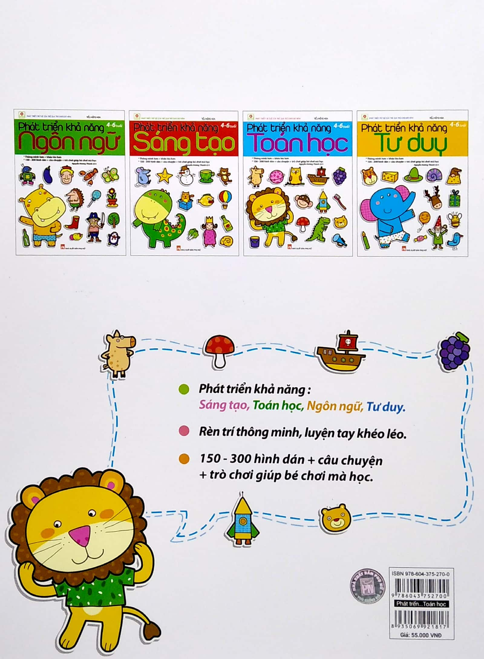 Bộ sách Phát triển khả năng bao gồm 4 cuốn, dành cho các bé từ 4 đến 6 tuổi. Bộ sách góp phần thúc đẩy sự phát triển trí tuệ, tạo cho trẻ niềm say mê, hứng thú khi tiếp xúc với môn học cũng như khả năng sáng tạo, tư duy của trẻ.